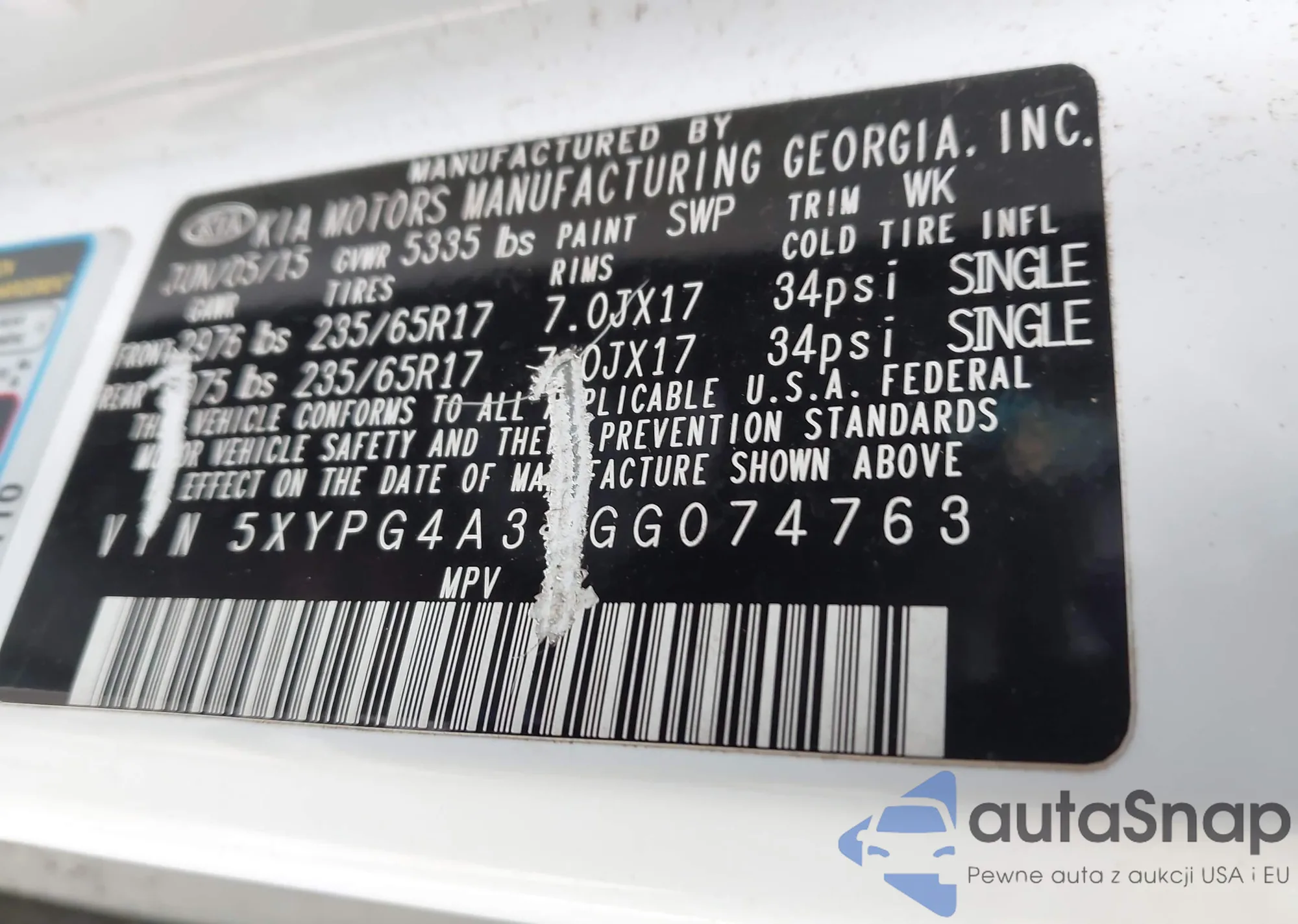 • VIN 5XYPG4A34GG074763