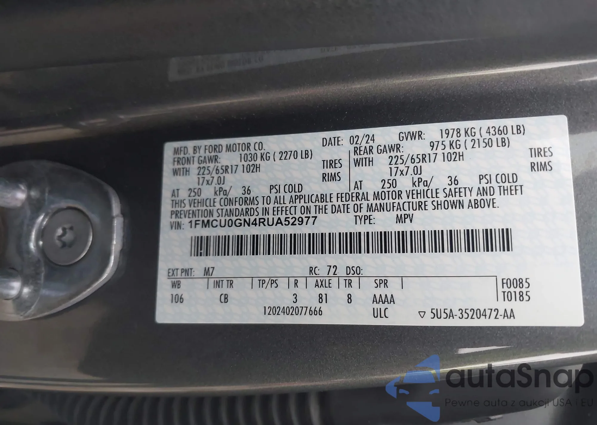 • VIN 1FMCU0GN4RUA52977