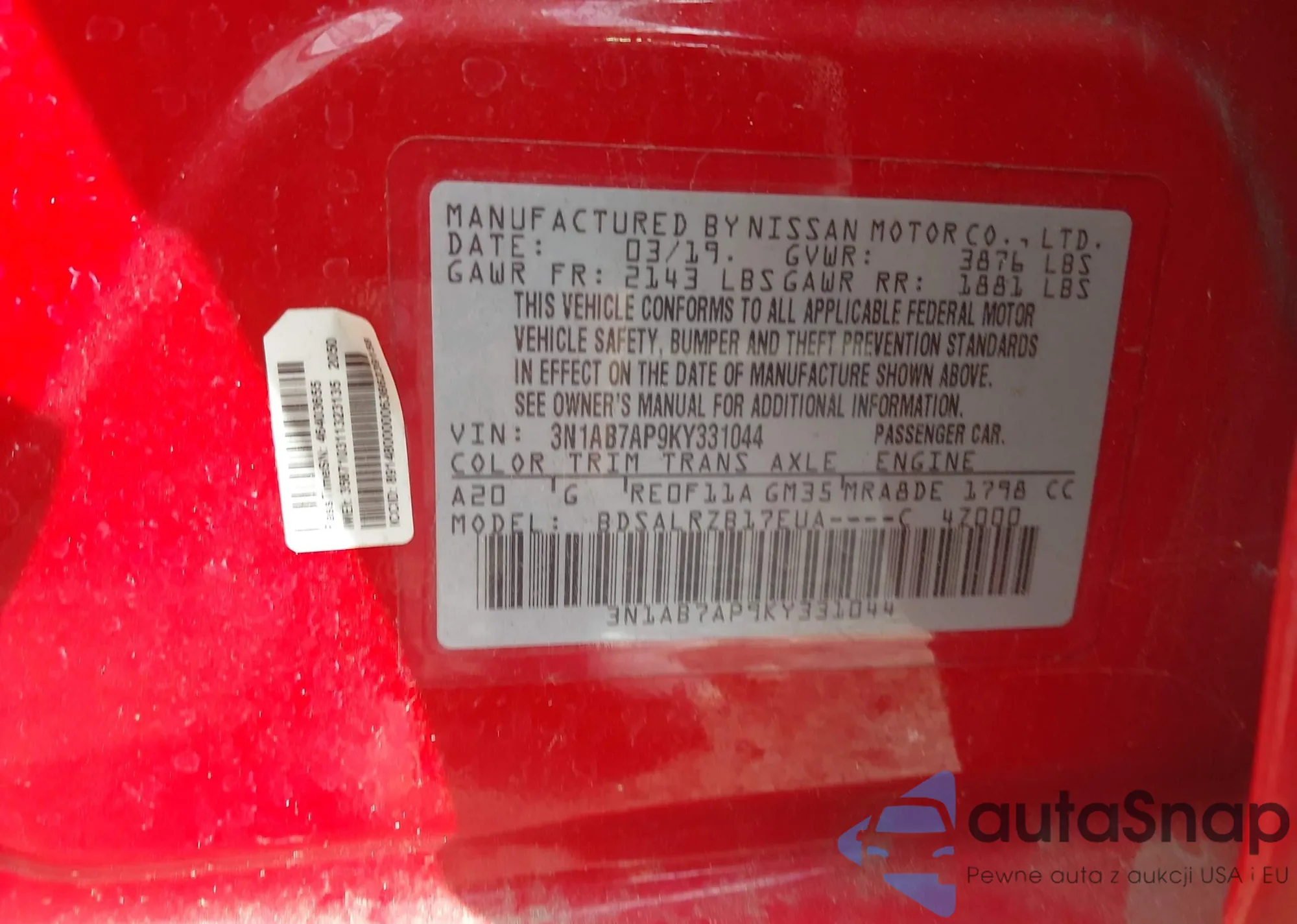 • VIN 3N1AB7AP9KY331044