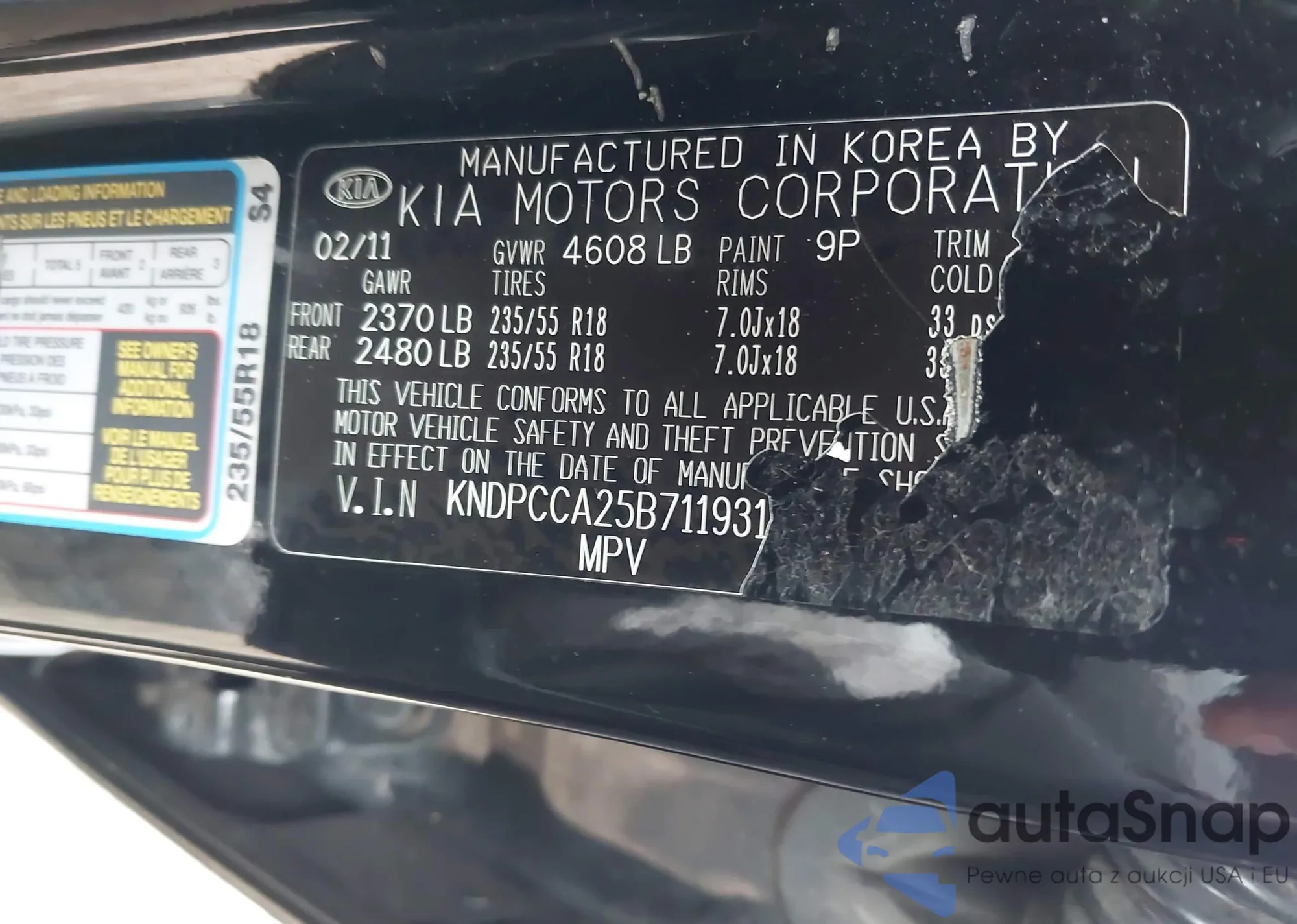 LOT: 44075160 VIN: KNDPCCA25B7119311