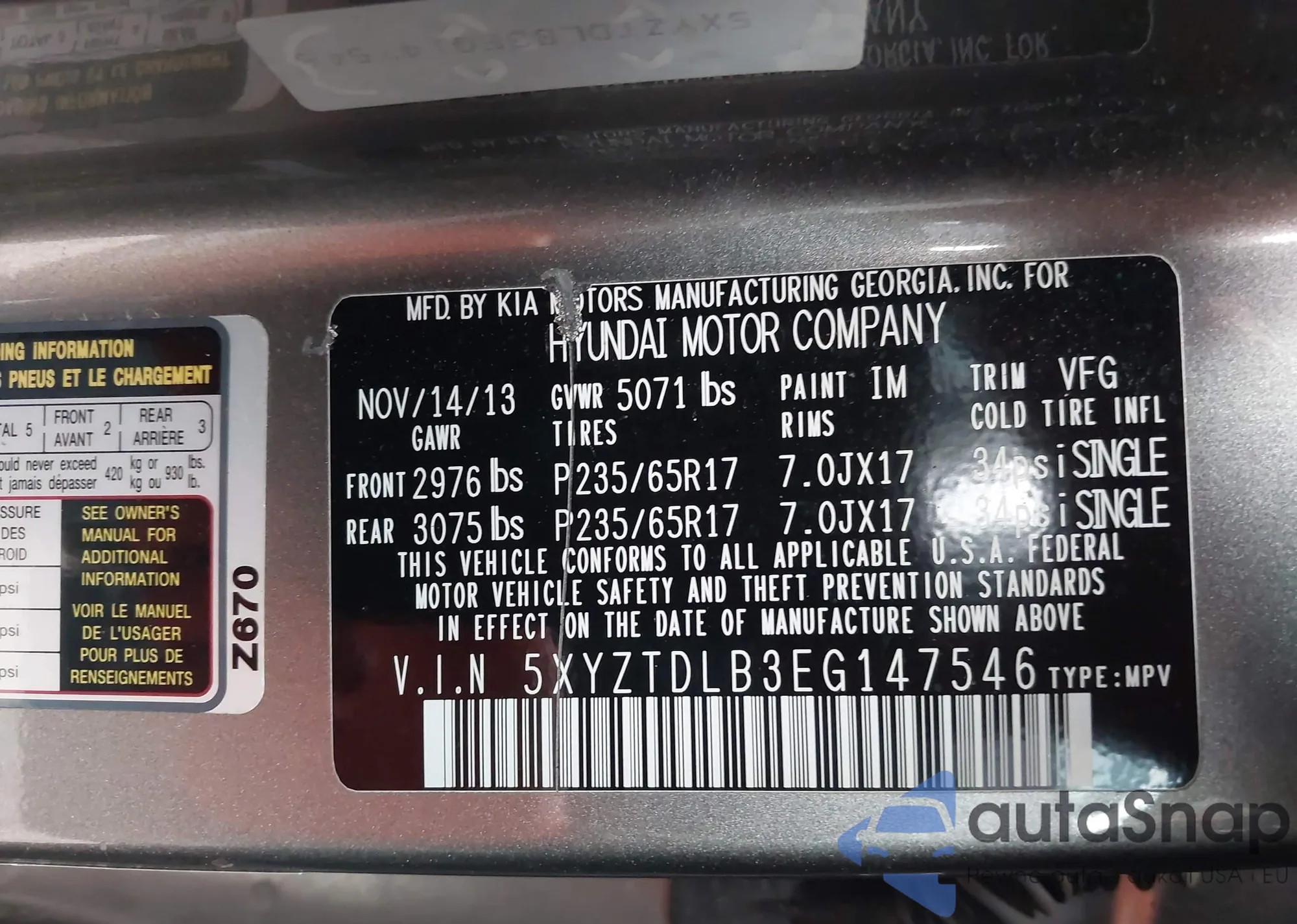 • VIN 5XYZTDLB3EG147546