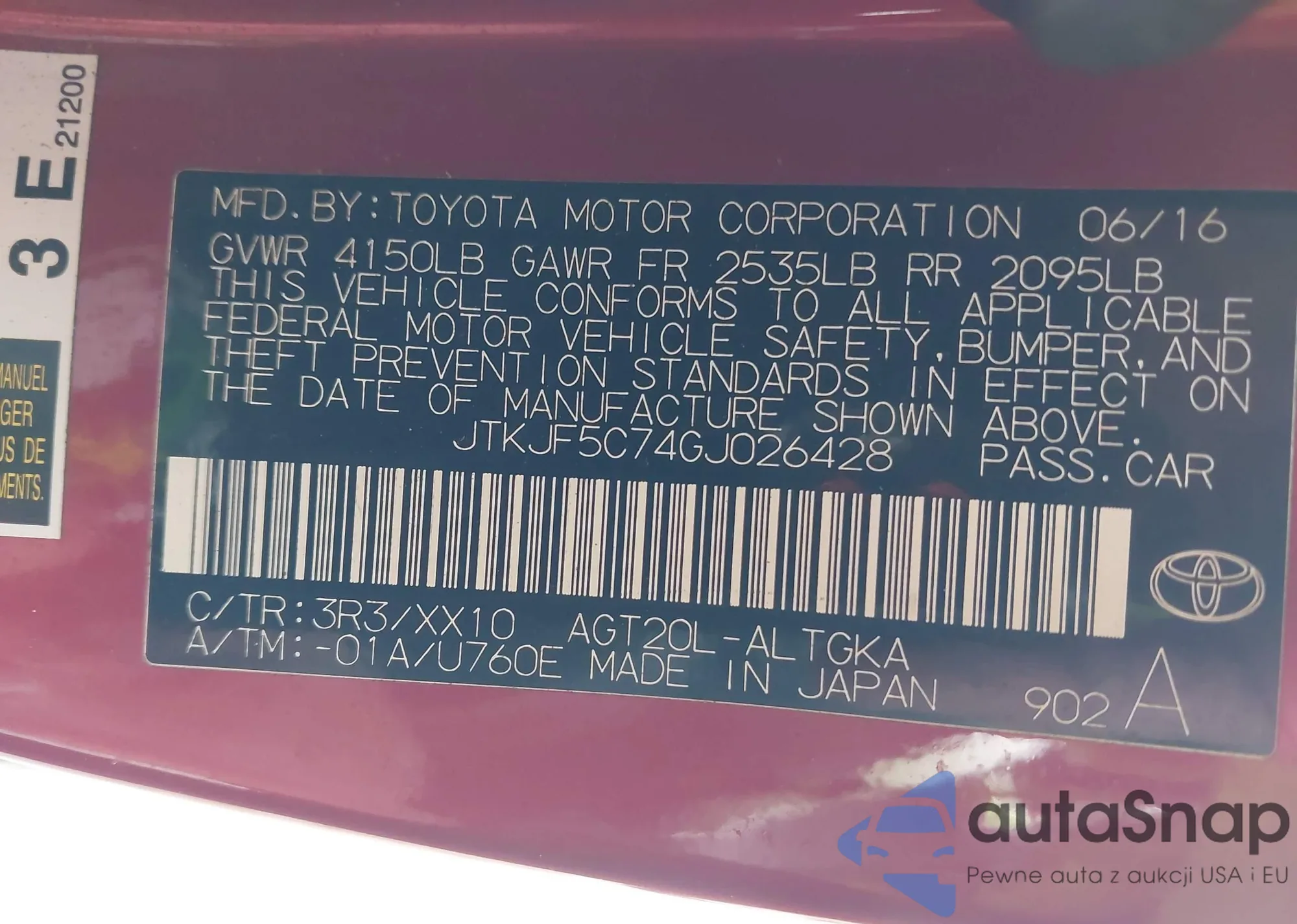 • VIN JTKJF5C74GJ026428