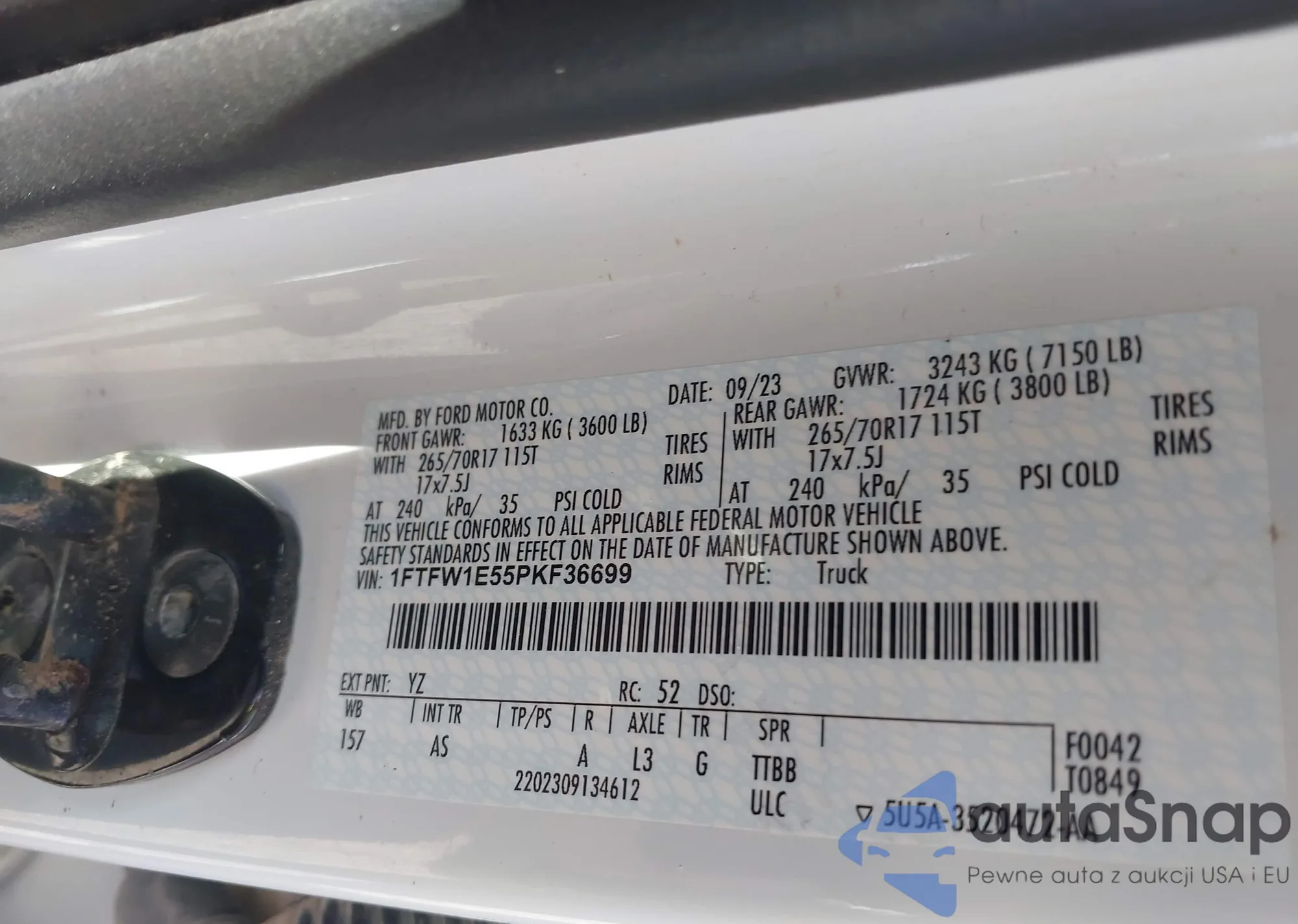 LOT: 44160428 VIN: 1FTFW1E55PKF36699
