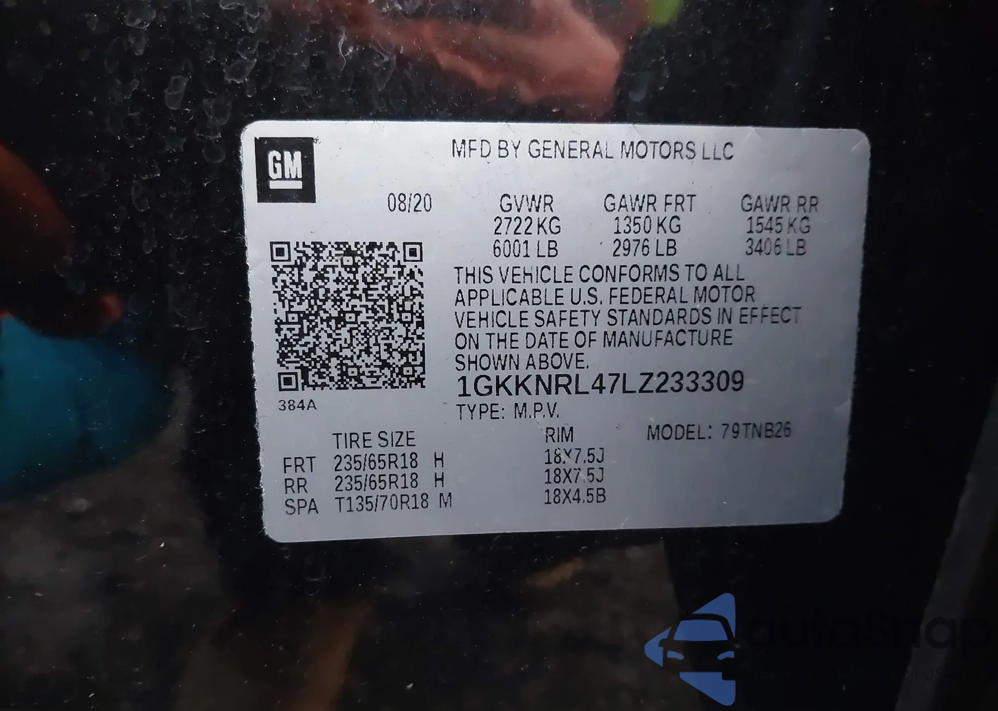 • VIN 1GKKNRL47LZ233309