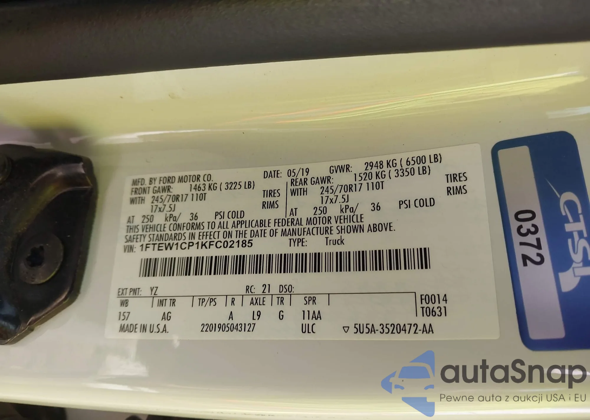 • VIN 1FTEW1CP1KFC02185