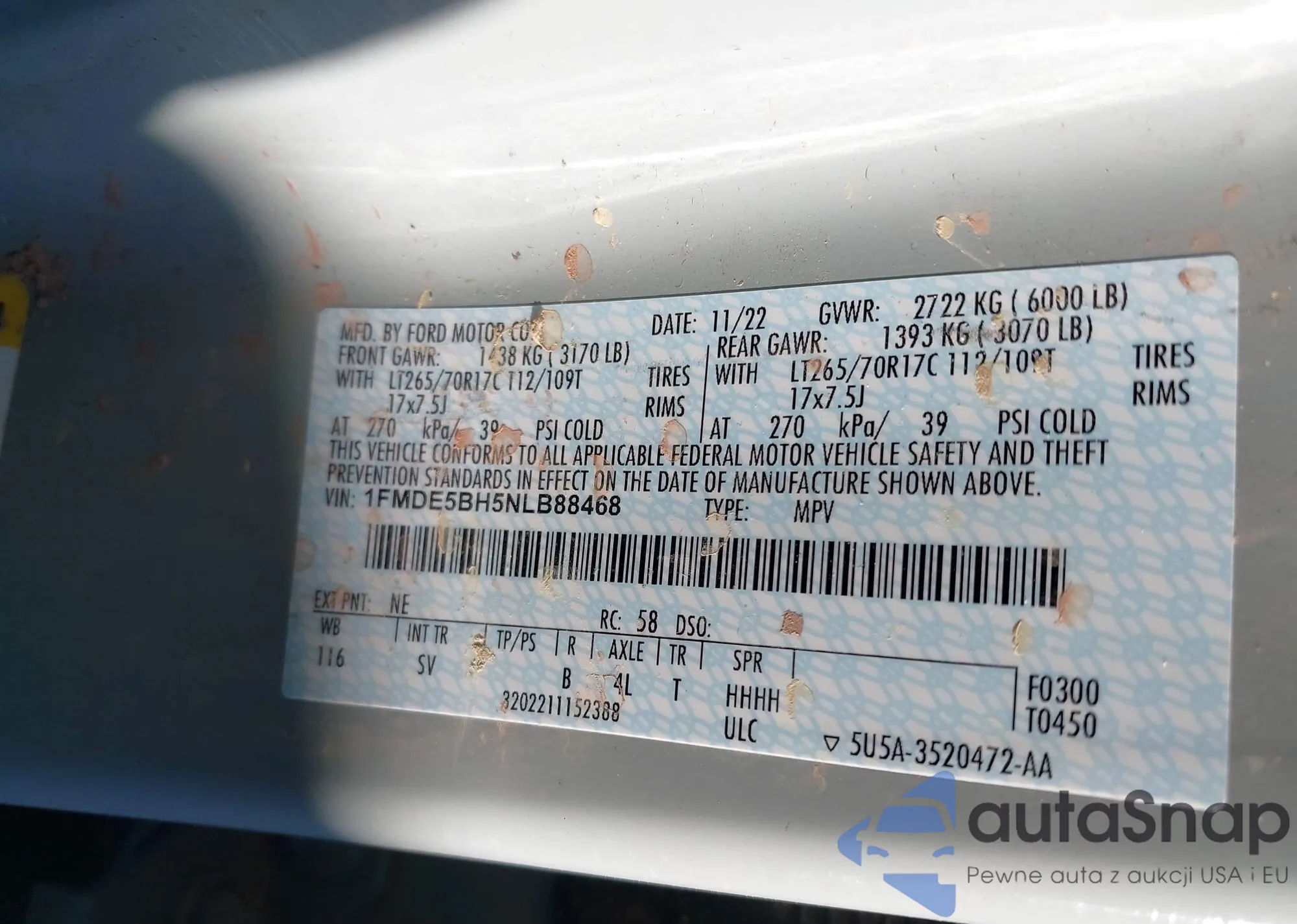 LOT: 43983729 VIN: 1G1ZU548X5F247905
