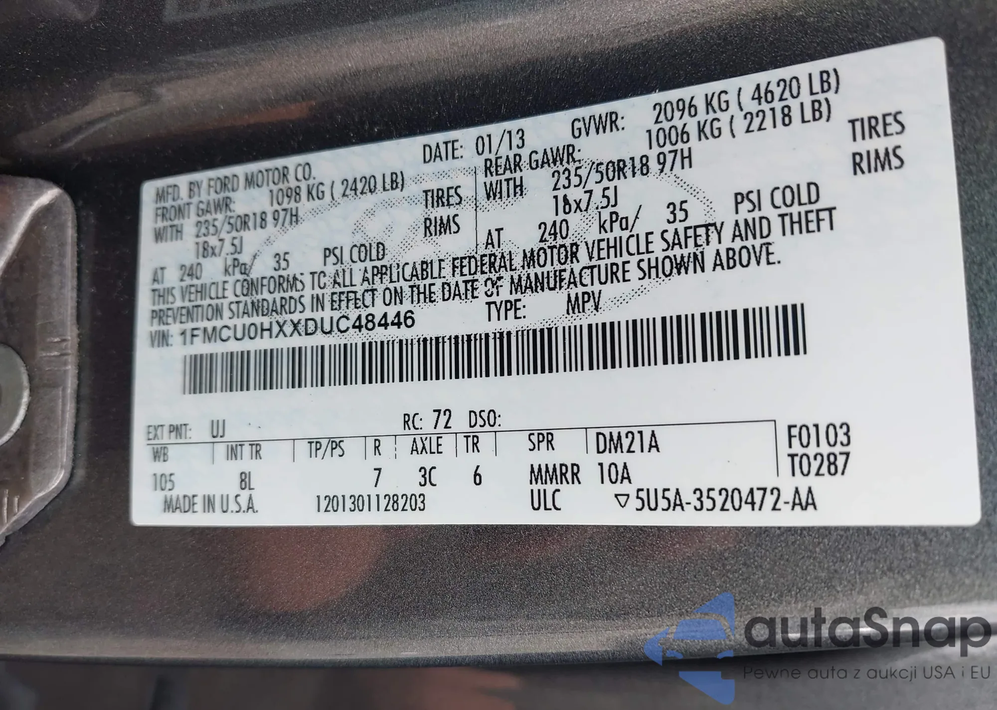 LOT: 43635781 VIN: 1FMCU9J99GUB04875