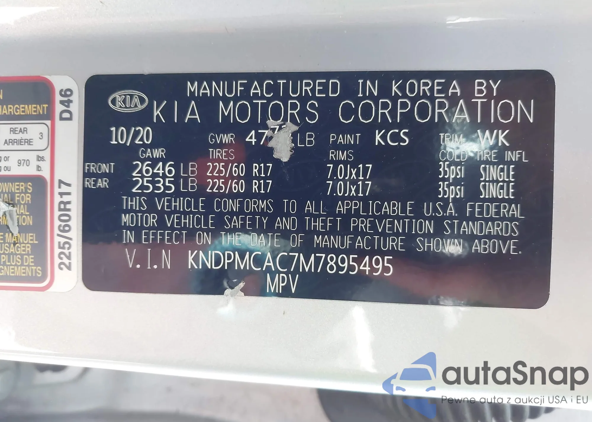 • VIN KNDPMCAC7M7895495