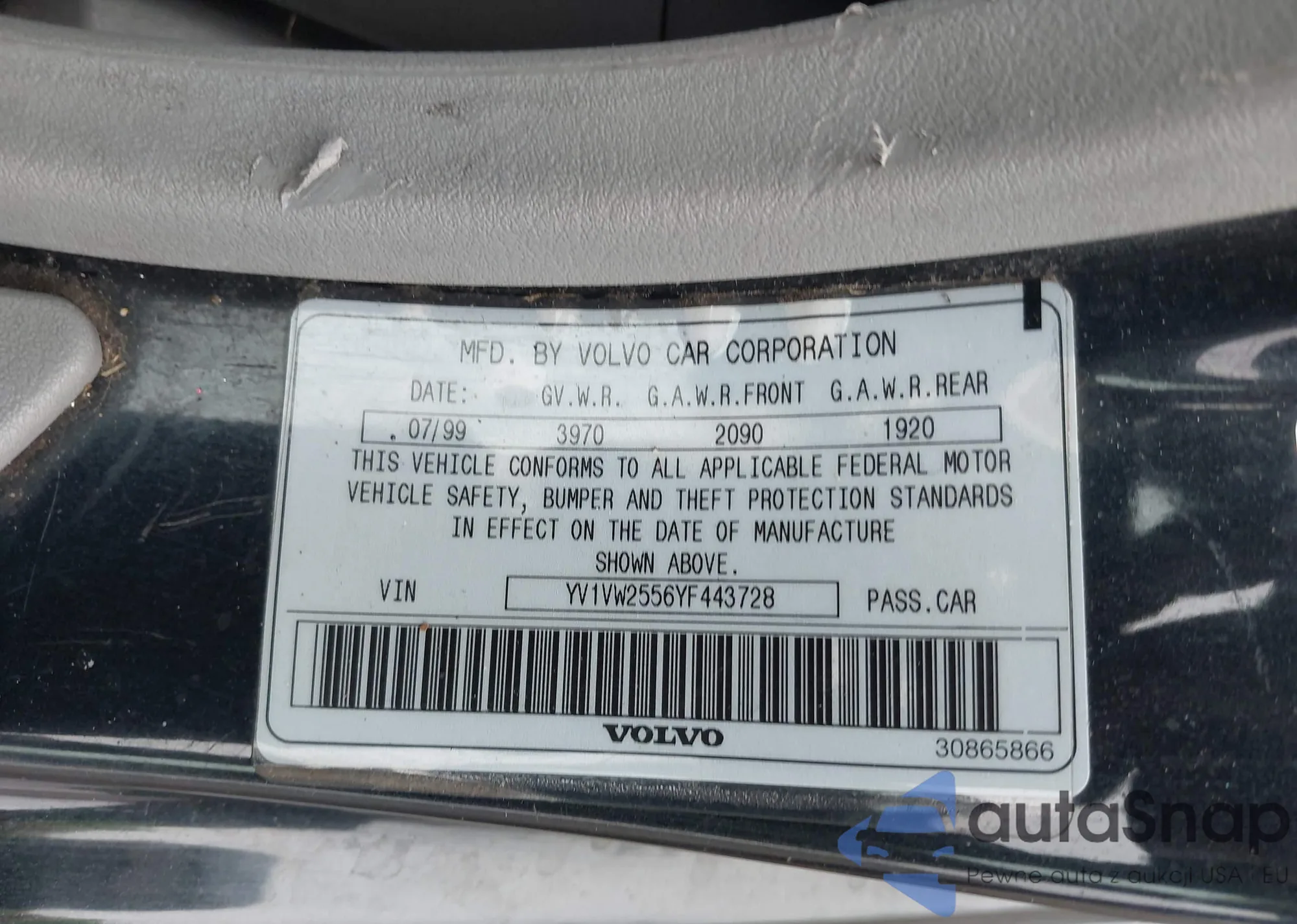 LOT: 42617167 VIN: YV1VW2556YF443728