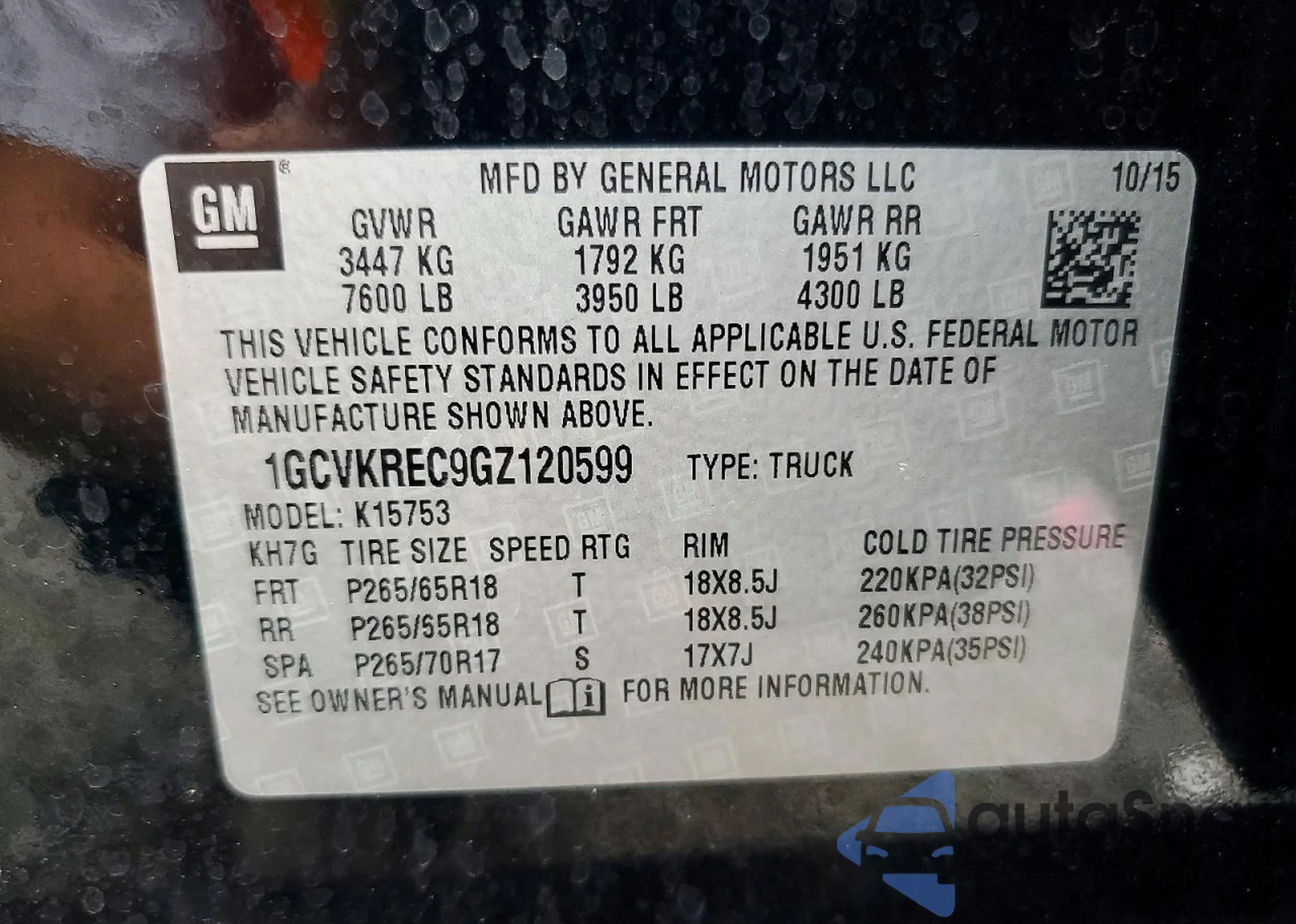 • VIN 1GCVKREC9GZ120599