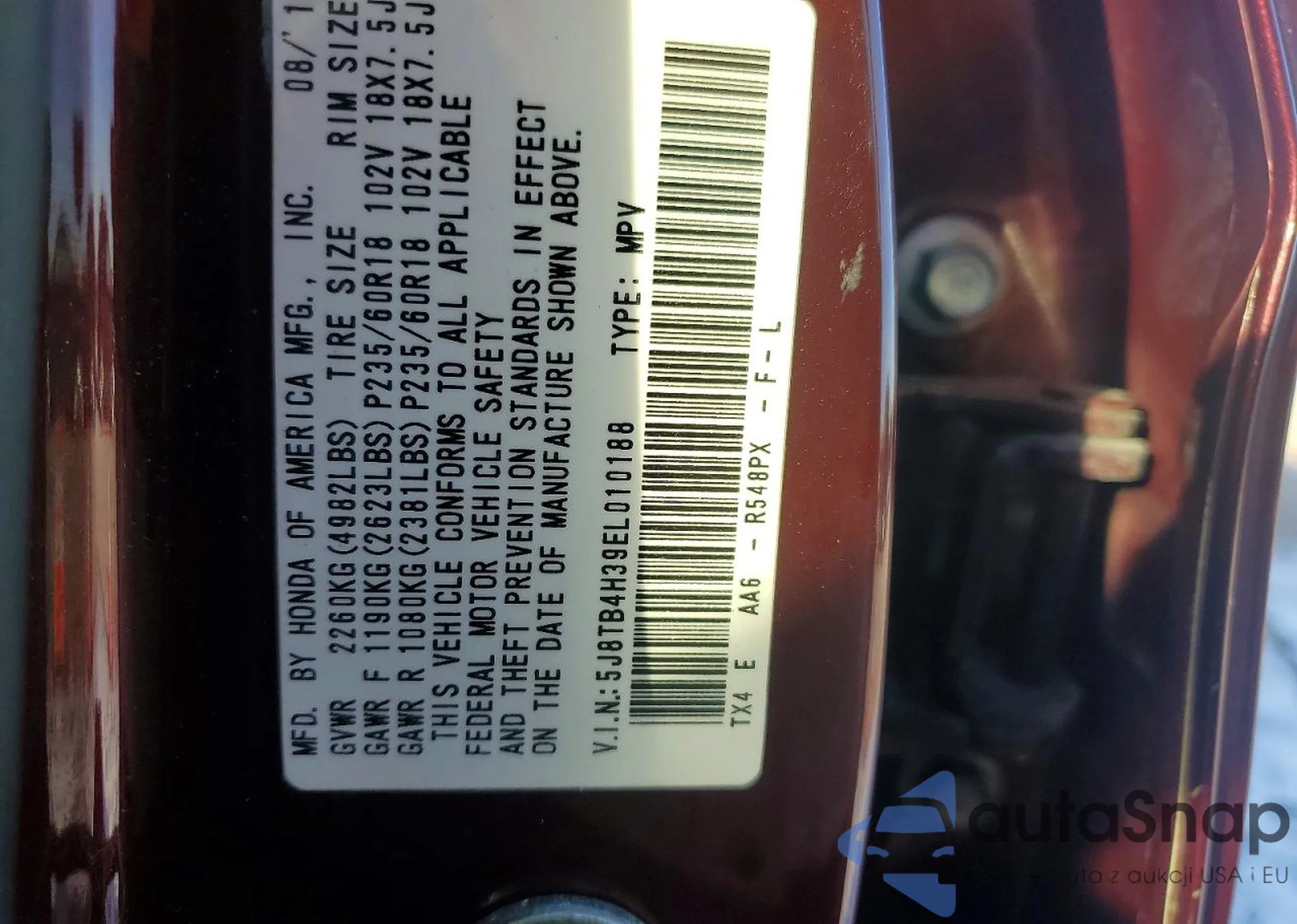 • VIN 5J8TB4H39EL010188