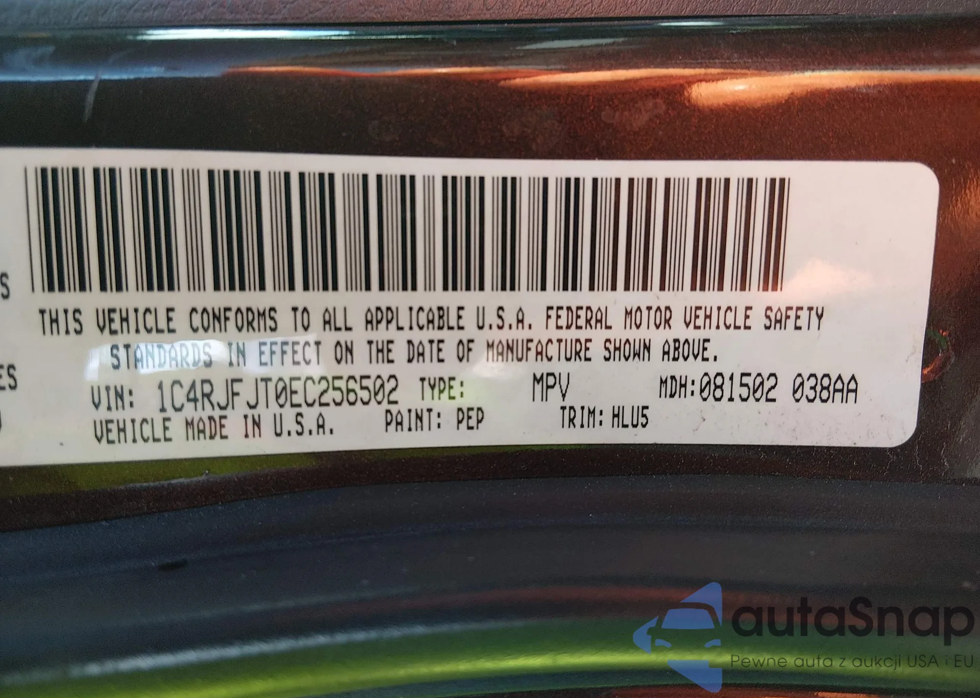 • VIN 1C4RJFJT0EC256502