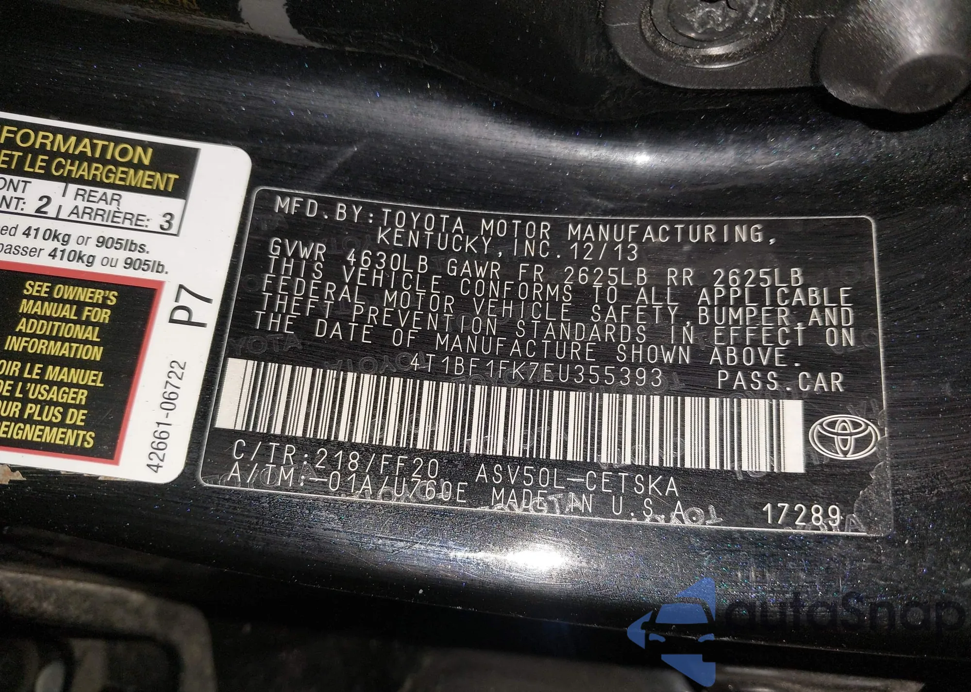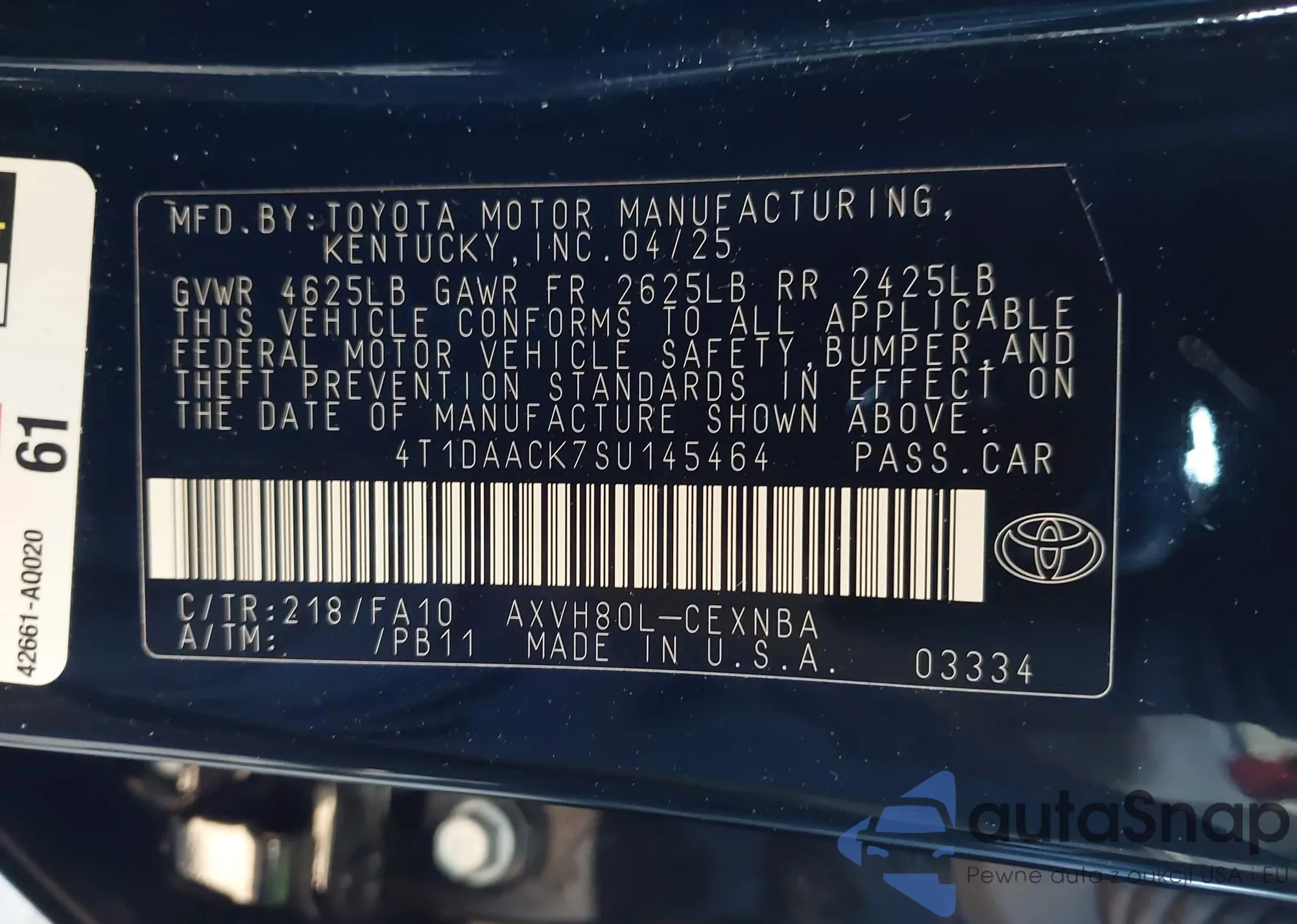 • VIN 4T1DAACK7SU145464