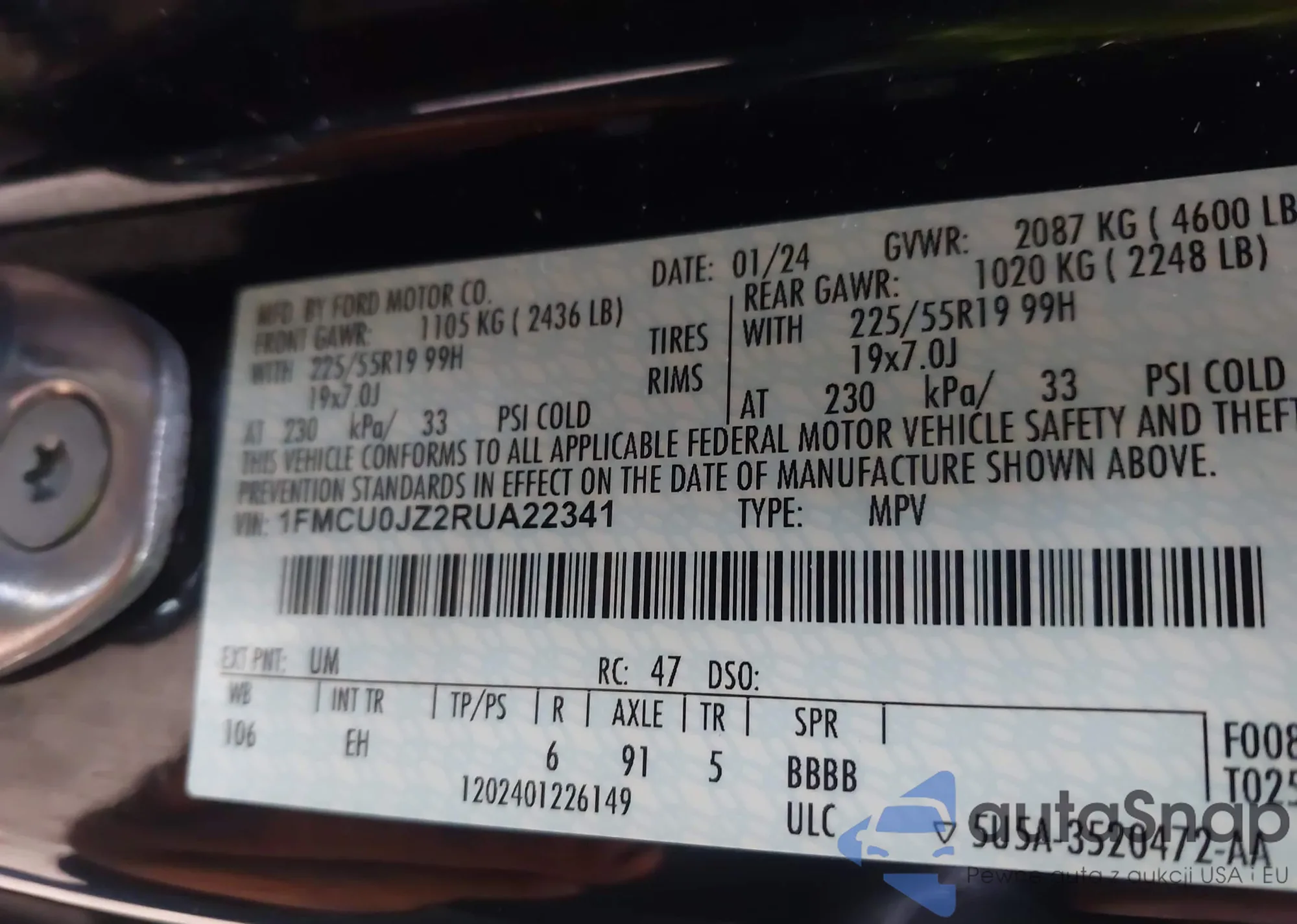 • VIN 1FMCU0JZ2RUA22341