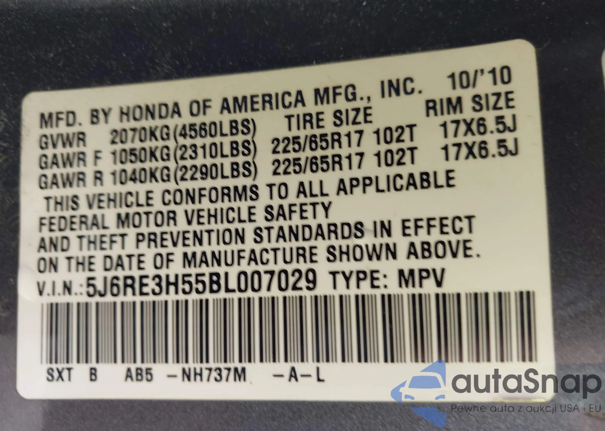LOT: 44105725 VIN: 1HGCM56367A223519