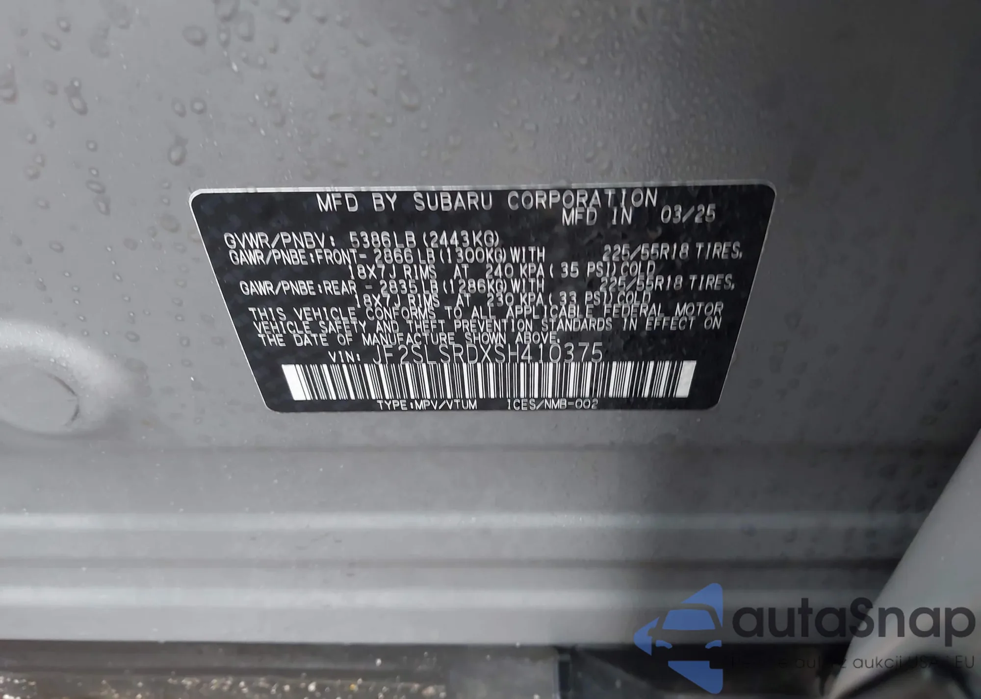 LOT: 43712472 VIN: JA4AR3AU9LU014533