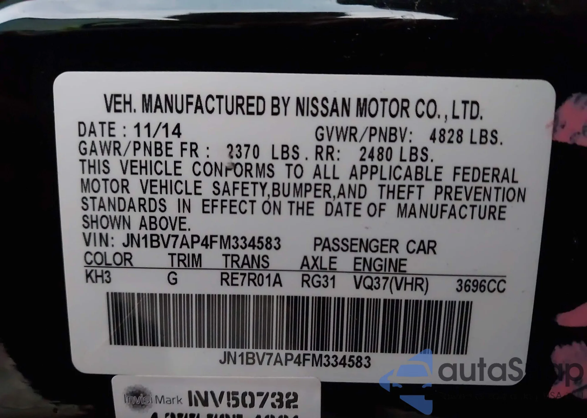 LOT: 44053238 VIN: JN1BV7AP4FM334583