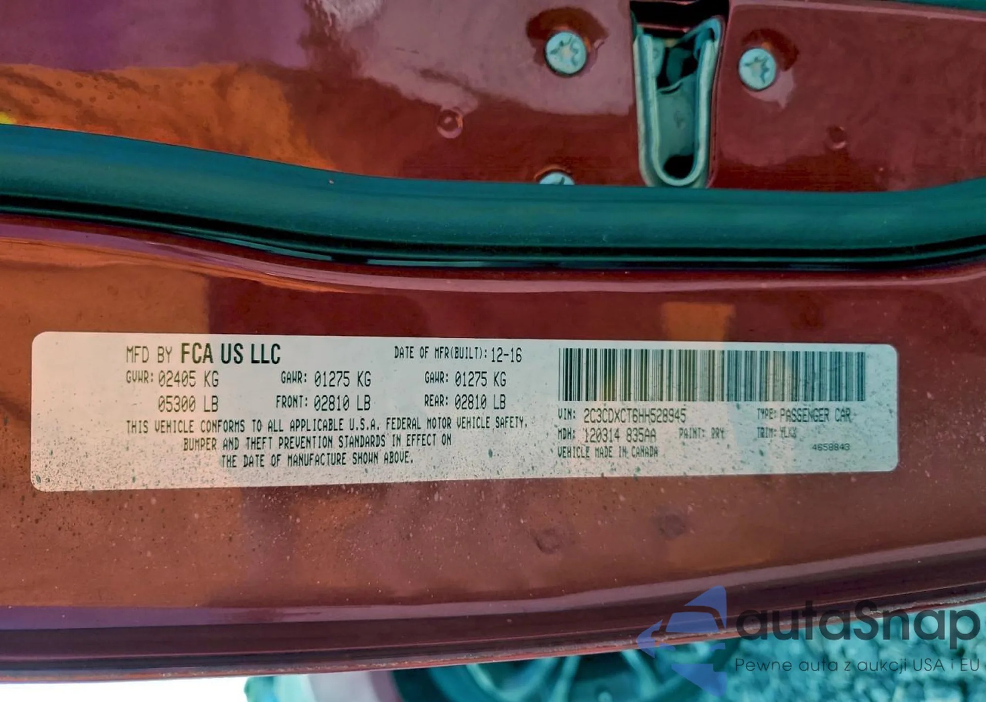 • VIN 2C3CDXCT6HH528945