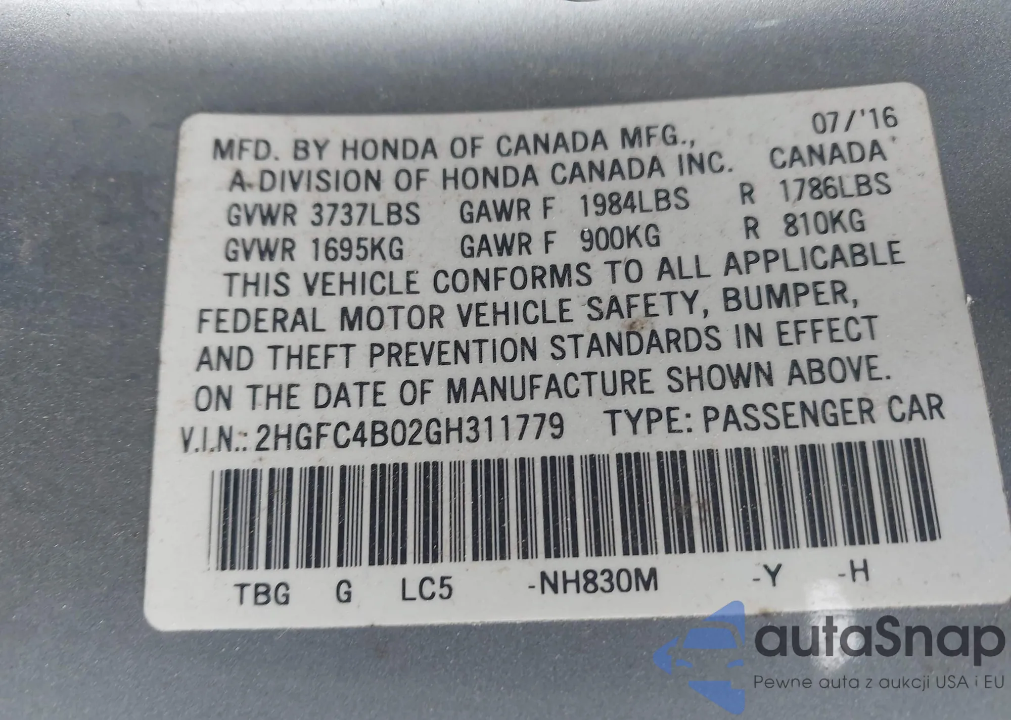 LOT: 44031317 VIN: 1HGCR2F84EA257368