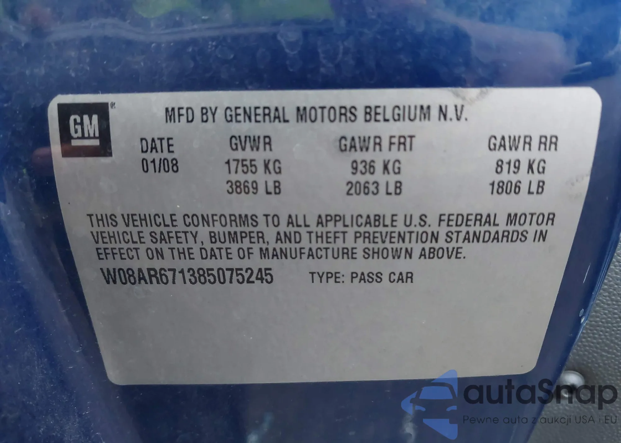 LOT: 44070407 VIN: W08AR671385075245