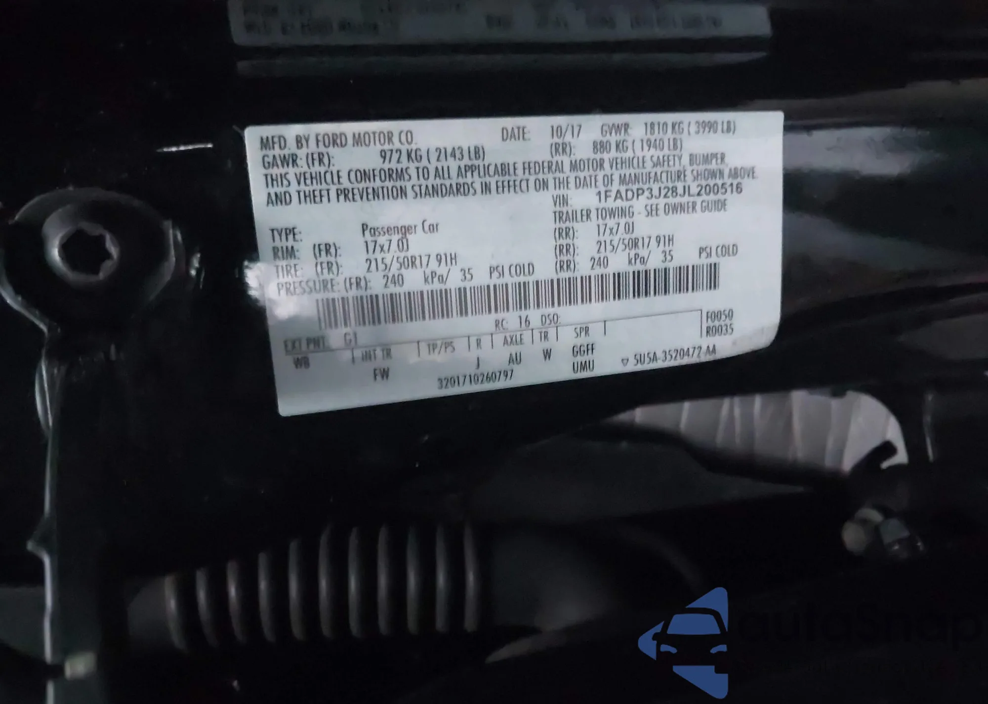 • VIN 1FADP3J28JL200516