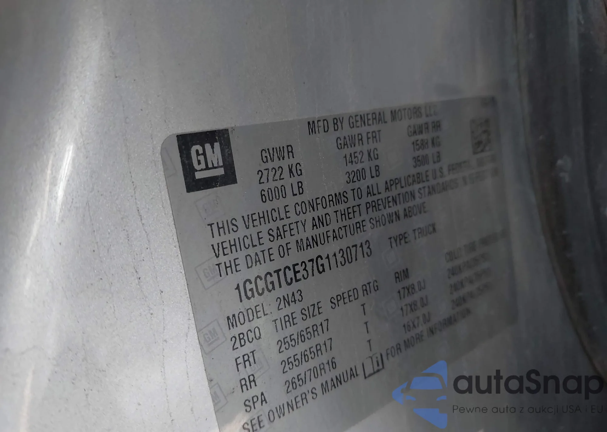 LOT: 43791678 VIN: 1GCGTCE37G1130713