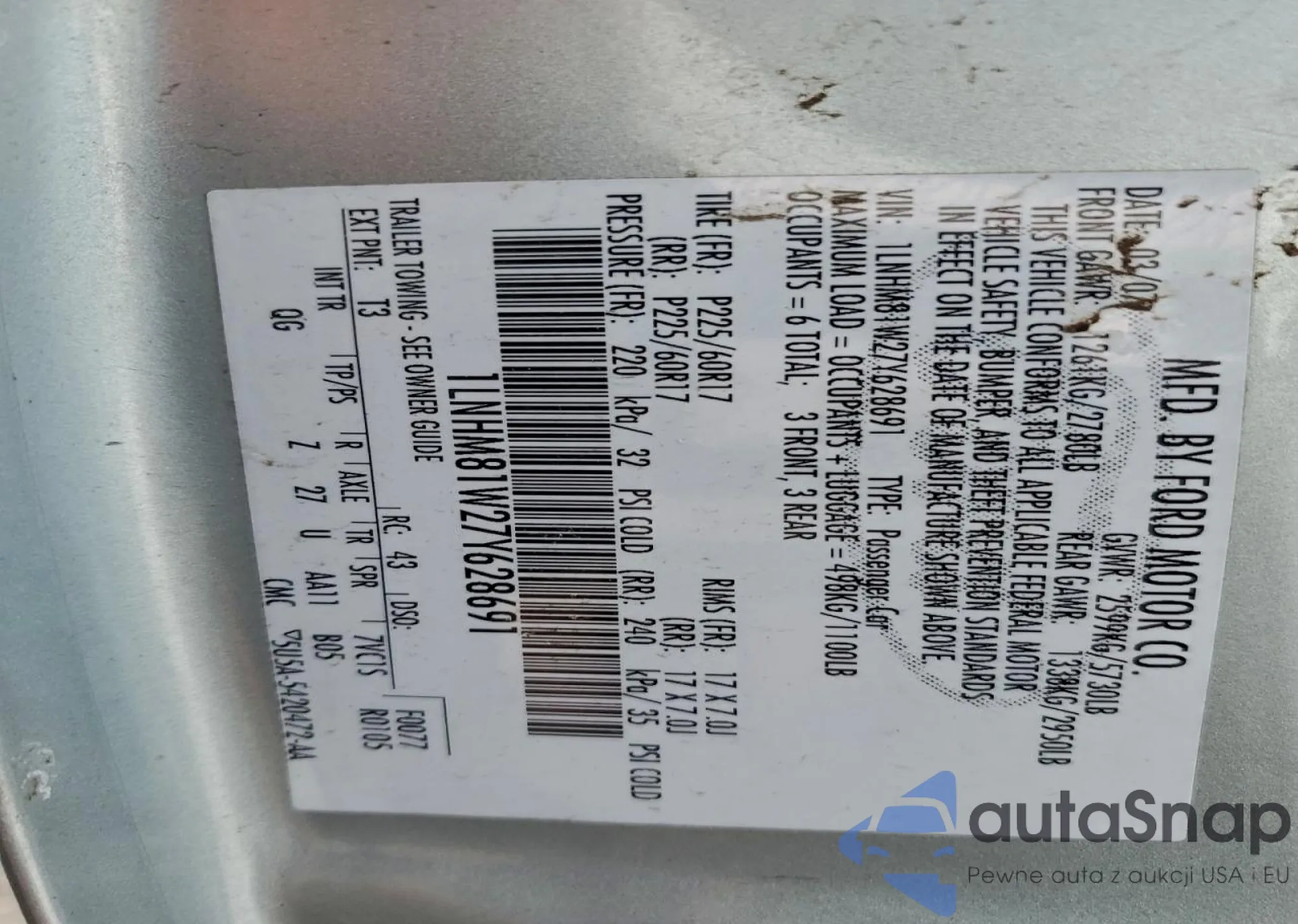 • Lot number 96165325