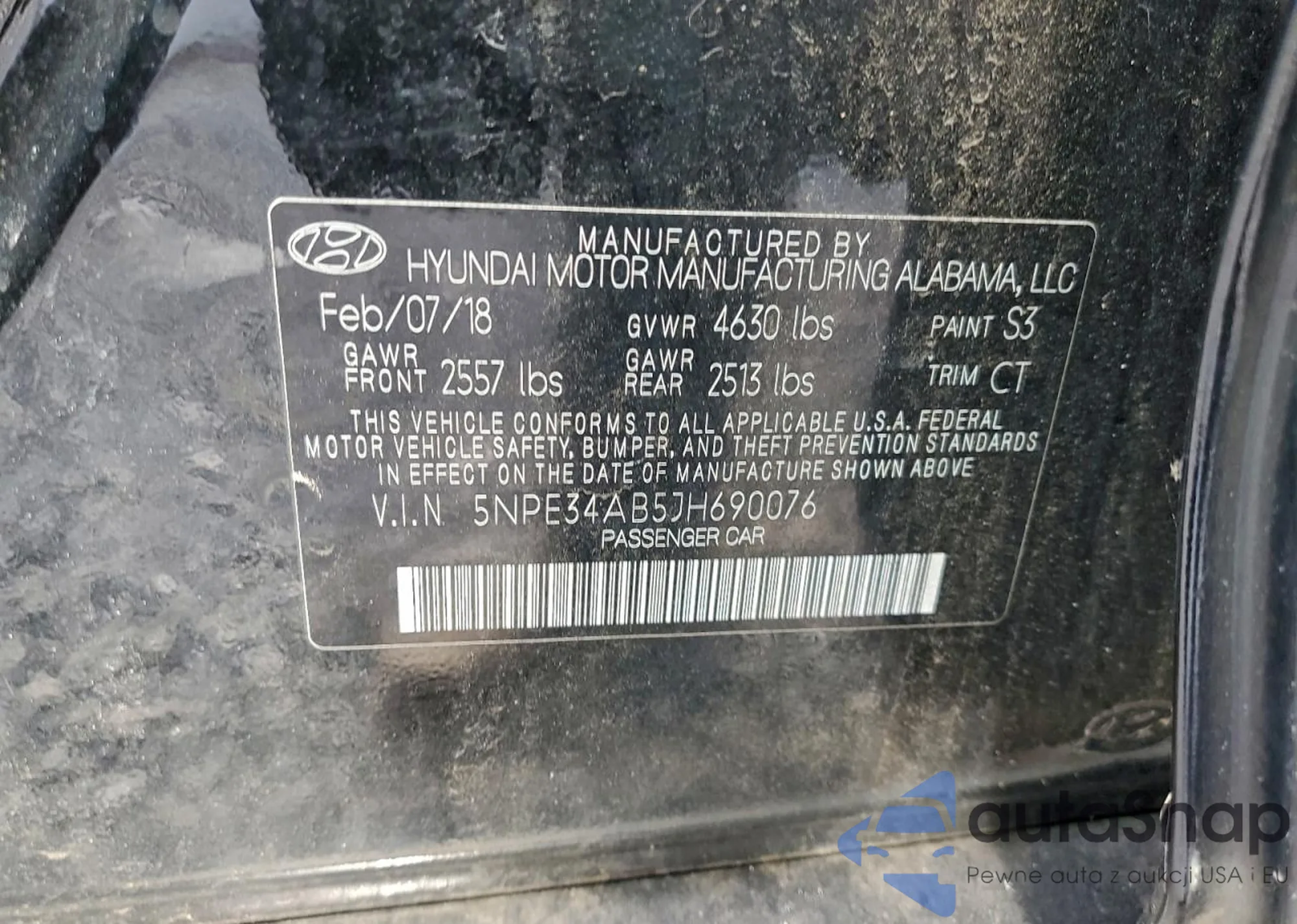 • VIN 5NPE34AB5JH690076