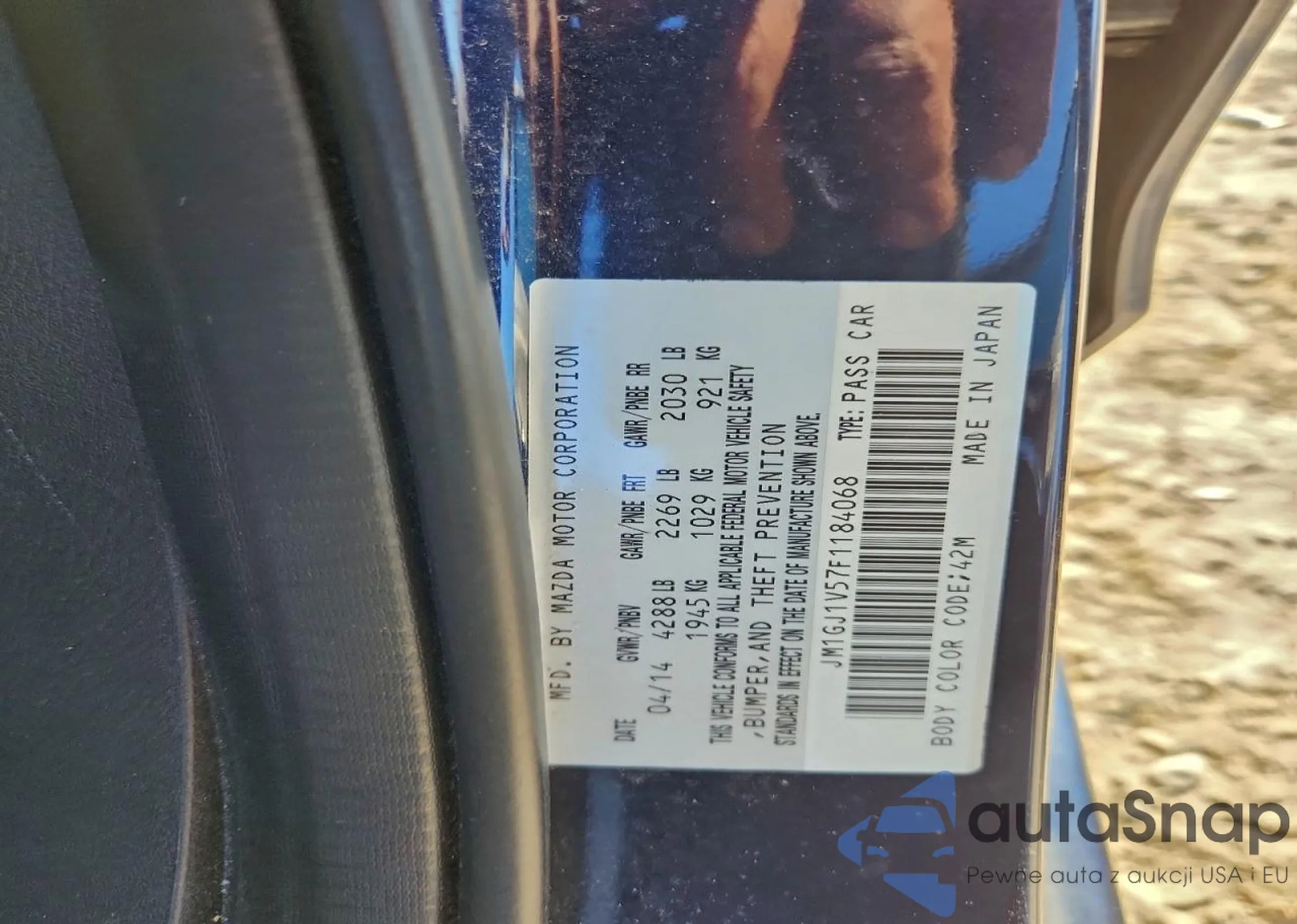 LOT: 97603745 VIN: JM1GJ1V57F1184068