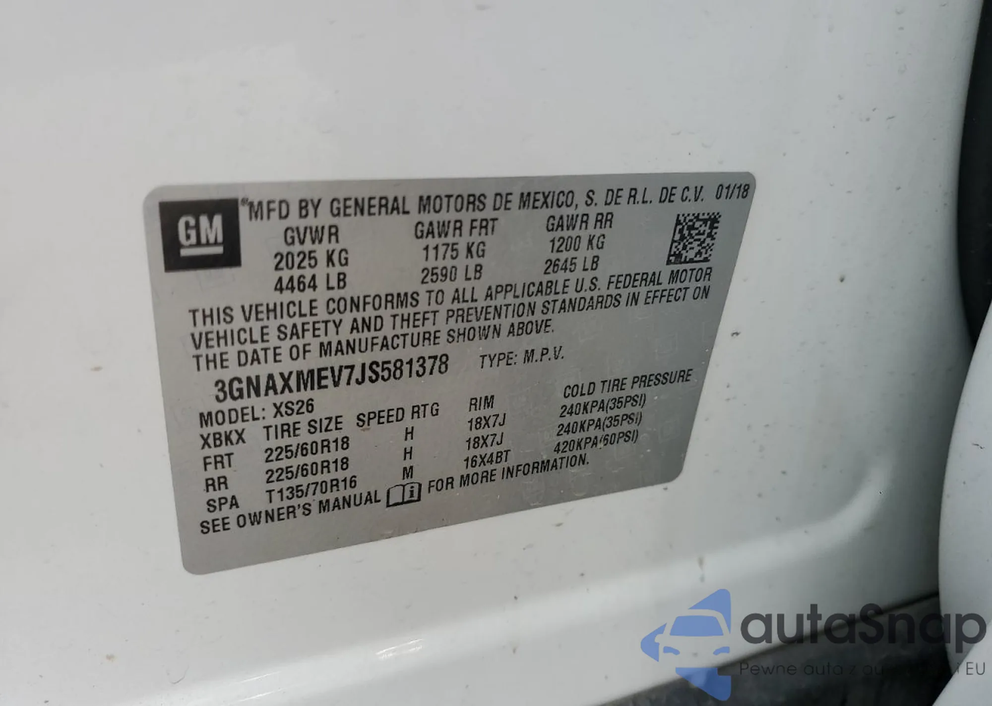 • VIN 3GNAXMEV7JS581378