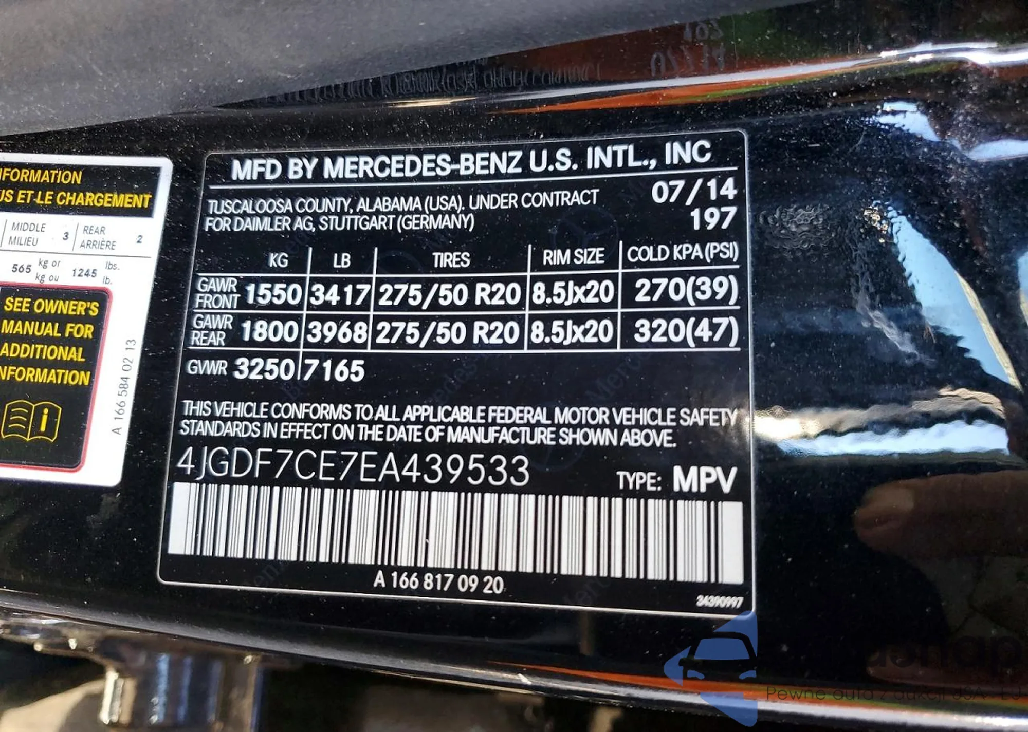 • VIN 4JGDF7CE7EA439533