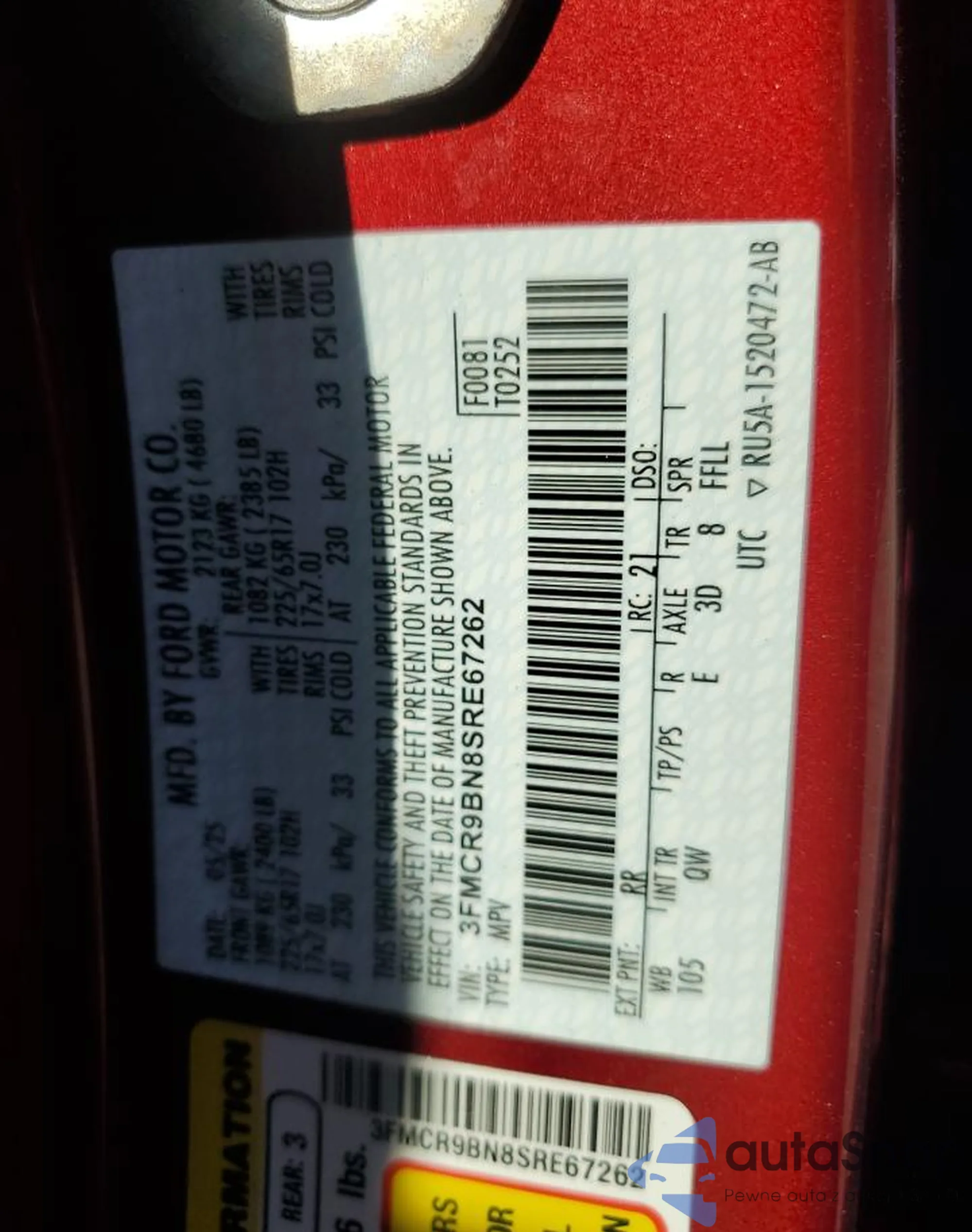 LOT: 72943495 VIN: 1ZVBP8AM5C5240167