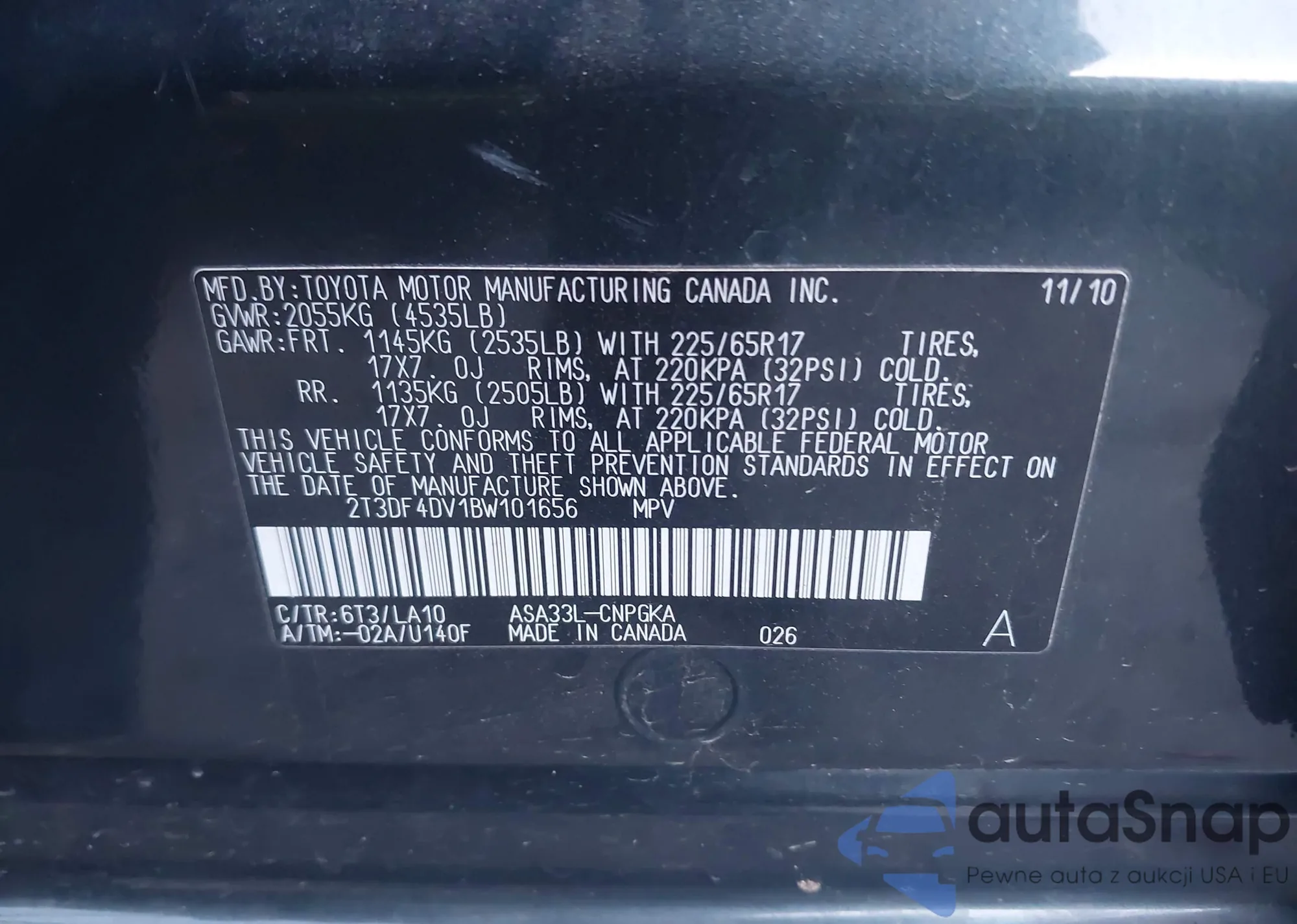 LOT: 43931678 VIN: 2T3DF4DV1BW101656