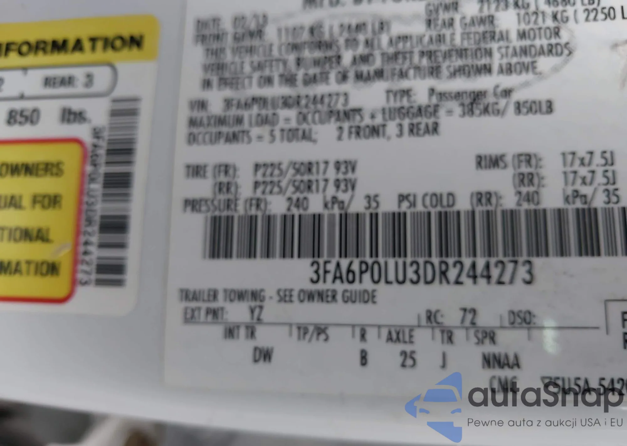 • VIN 3FA6P0LU3DR244273