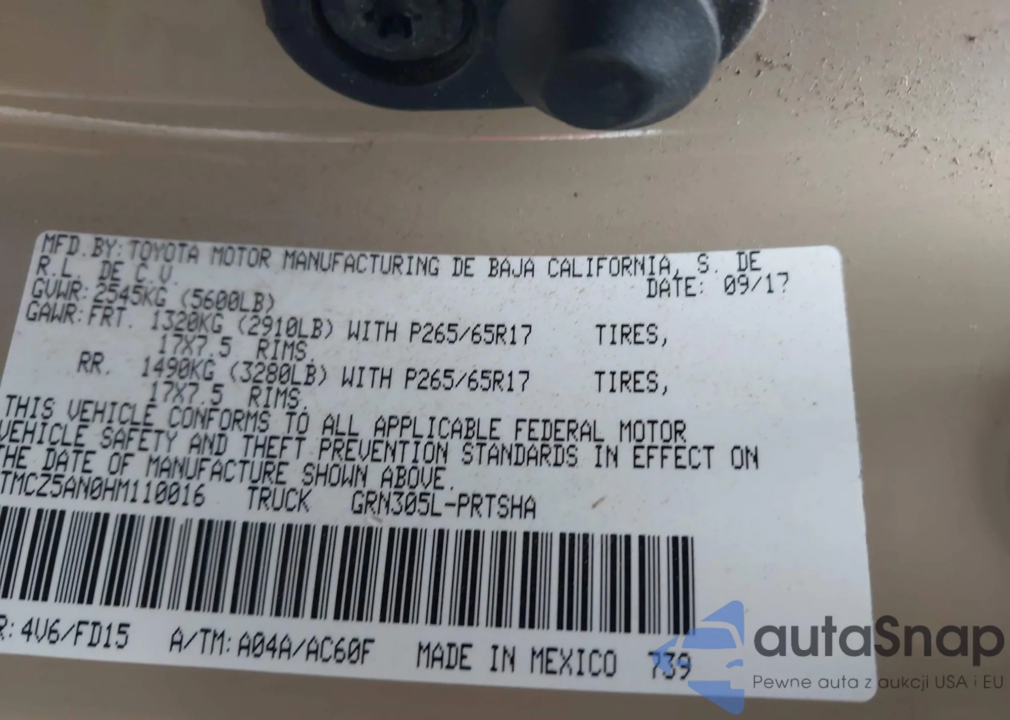 LOT: 43505533 VIN: 5NPLS4AG3PH087481