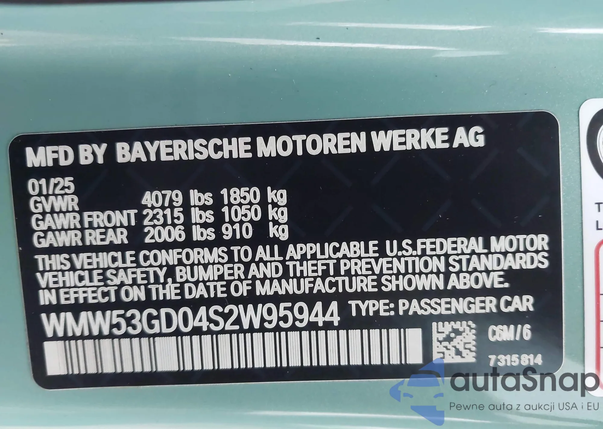 • VIN WMW53GD04S2W95944