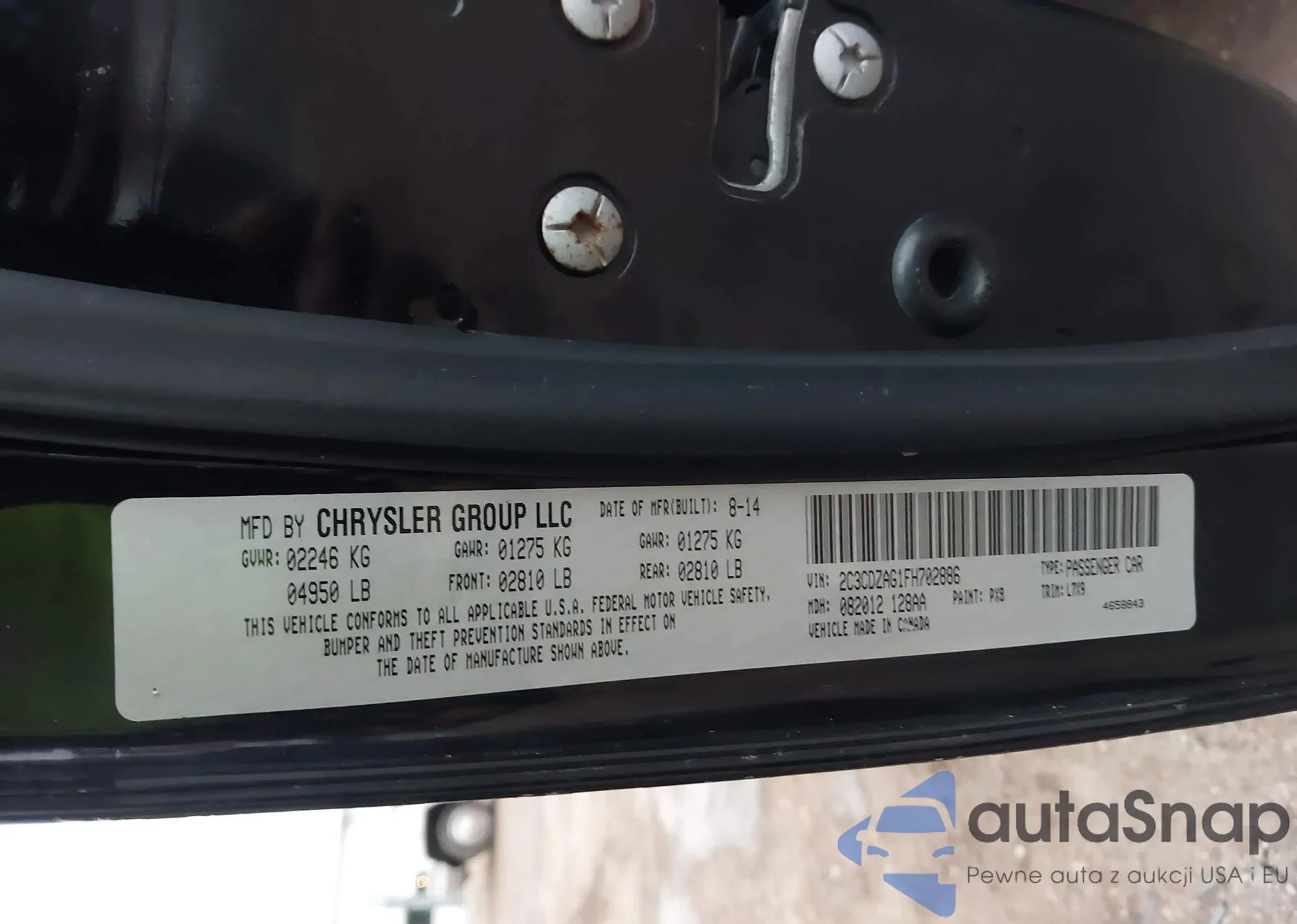 • VIN 2C3CDZAG1FH702886