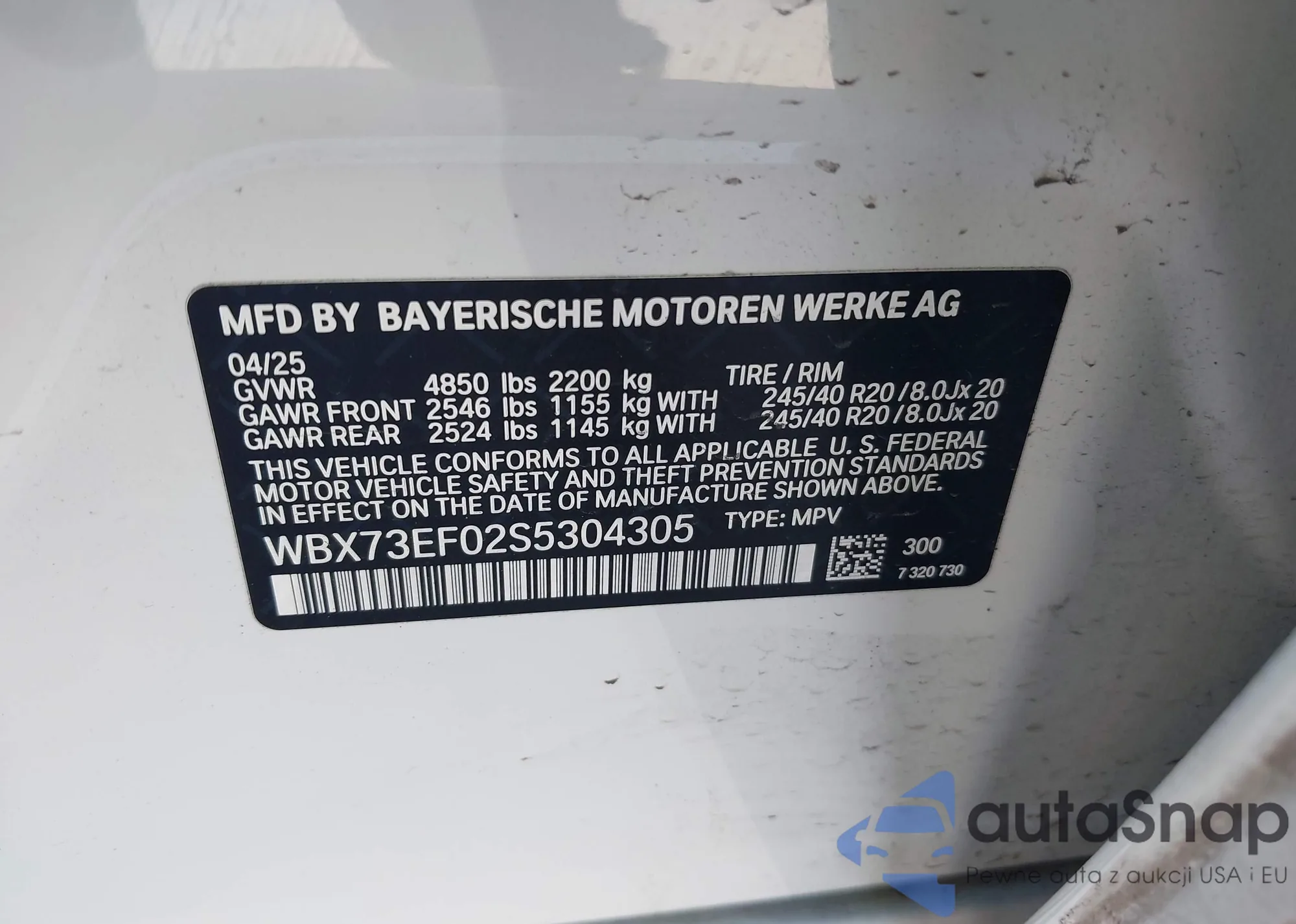 • VIN WBX73EF02S5304305