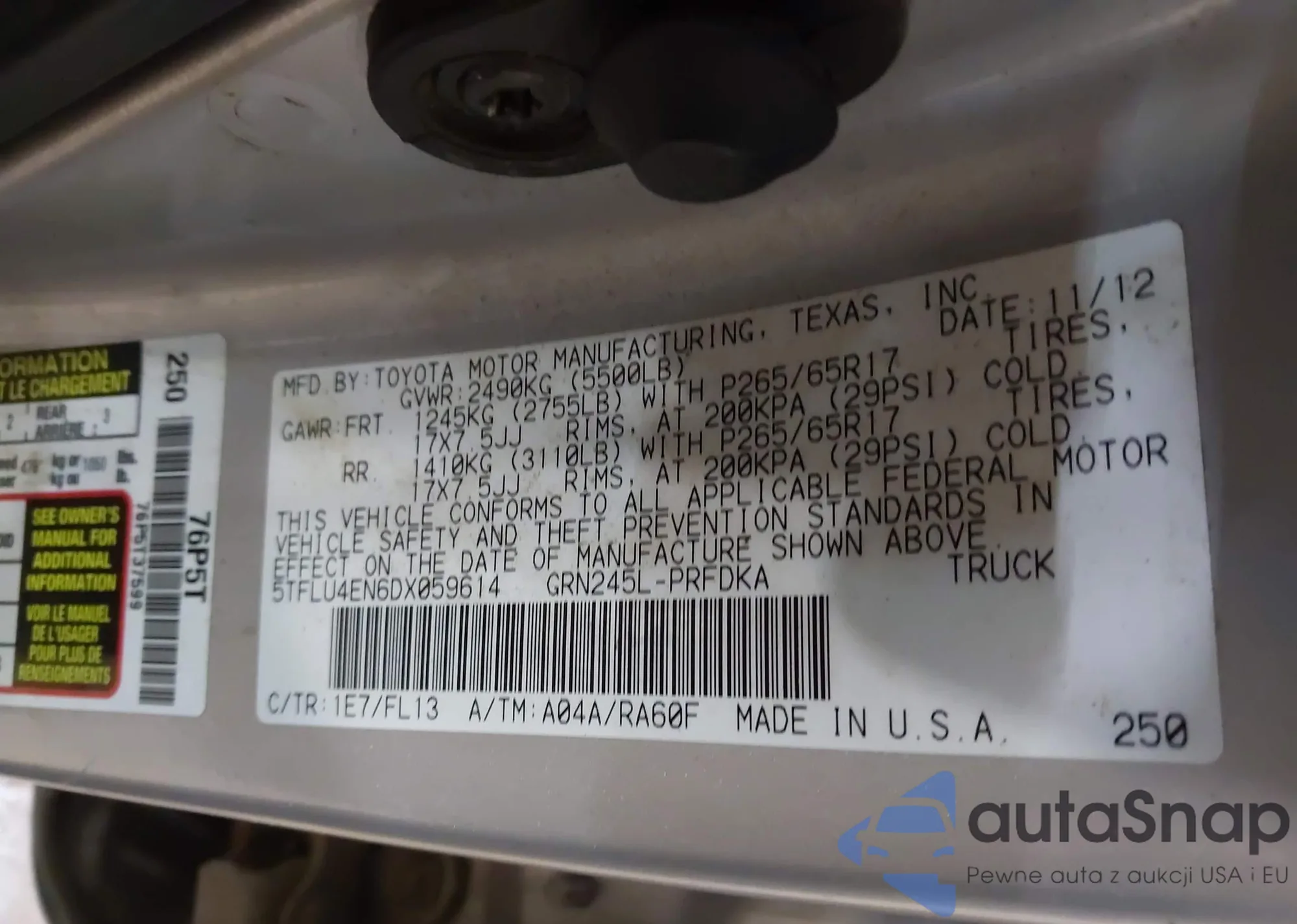• VIN 5TFLU4EN6DX059614