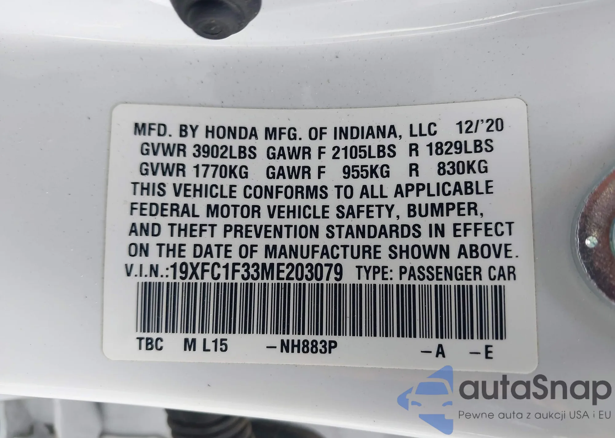 • VIN 19XFC1F33ME203079
