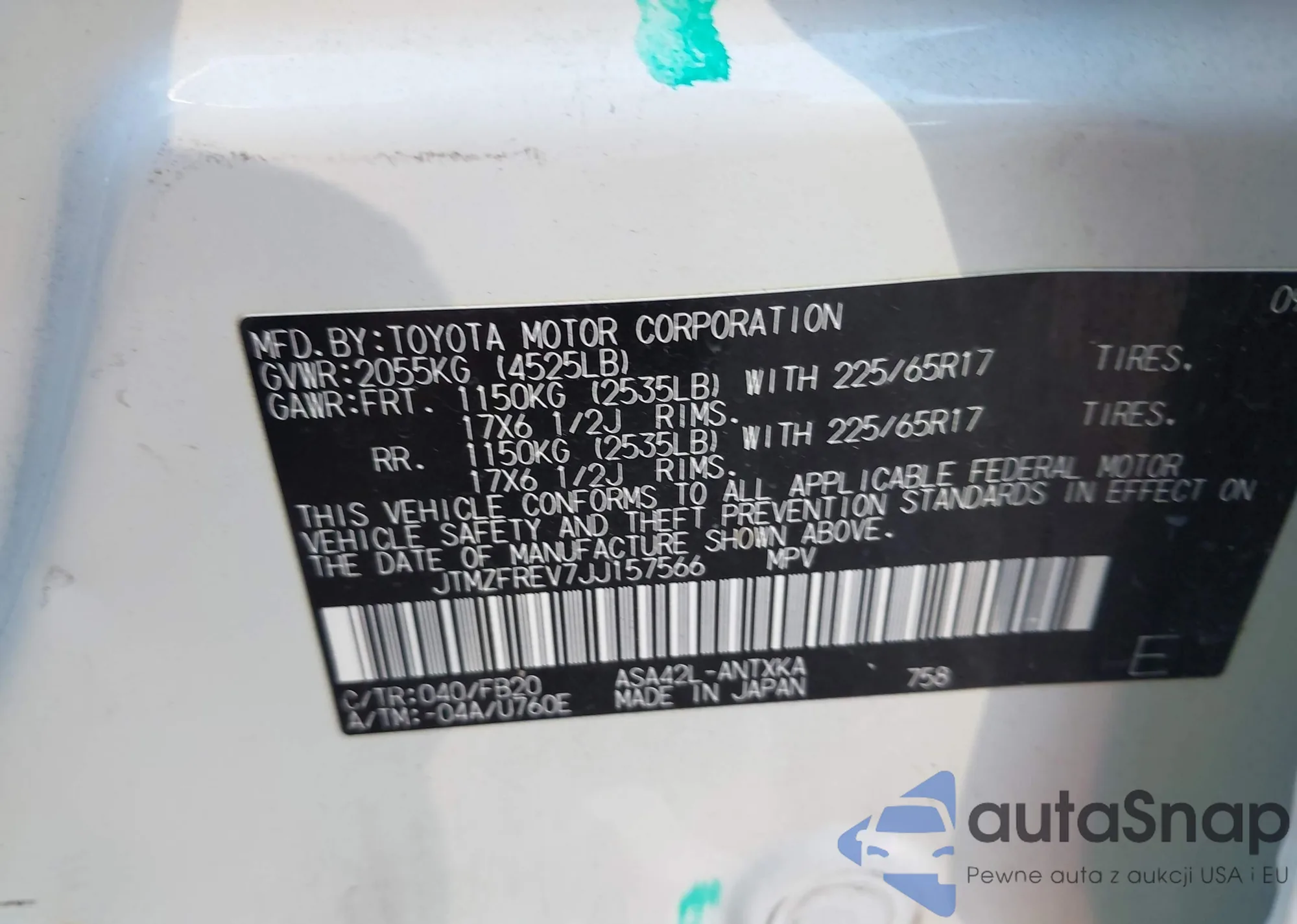 • VIN JTMZFREV7JJ157566