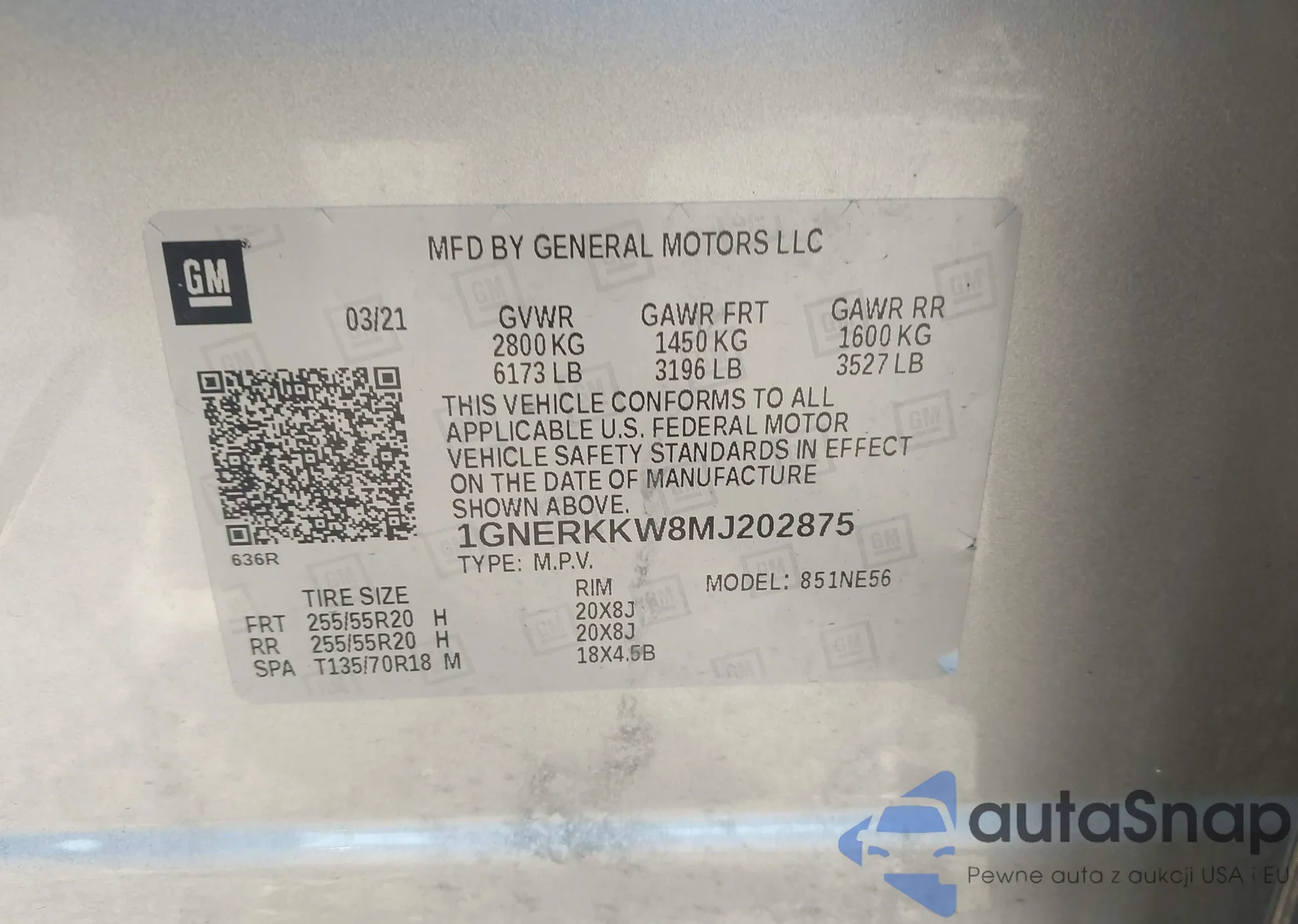 LOT: 43425166 VIN: 1GNERKKW8MJ202875