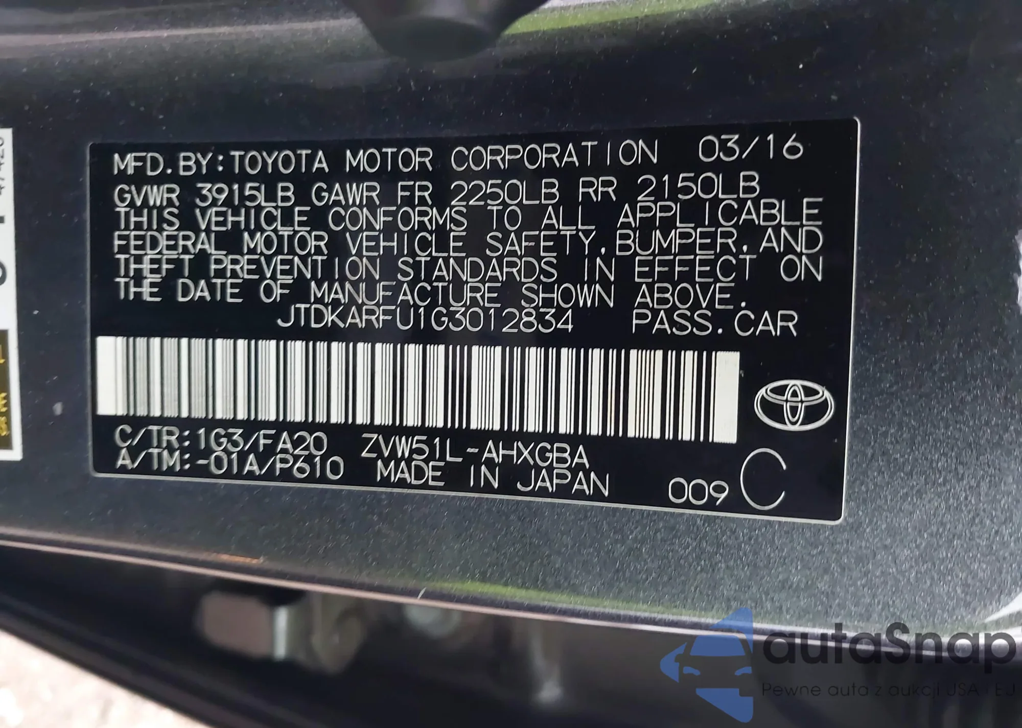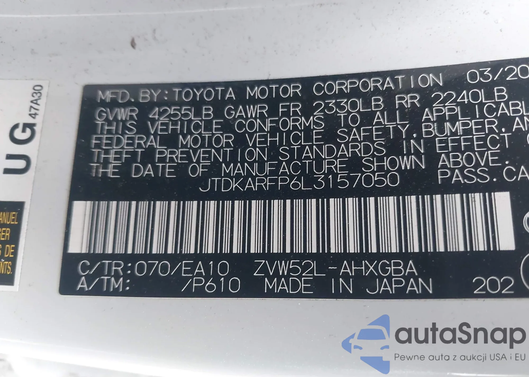 • VIN JTDKARFP6L3157050