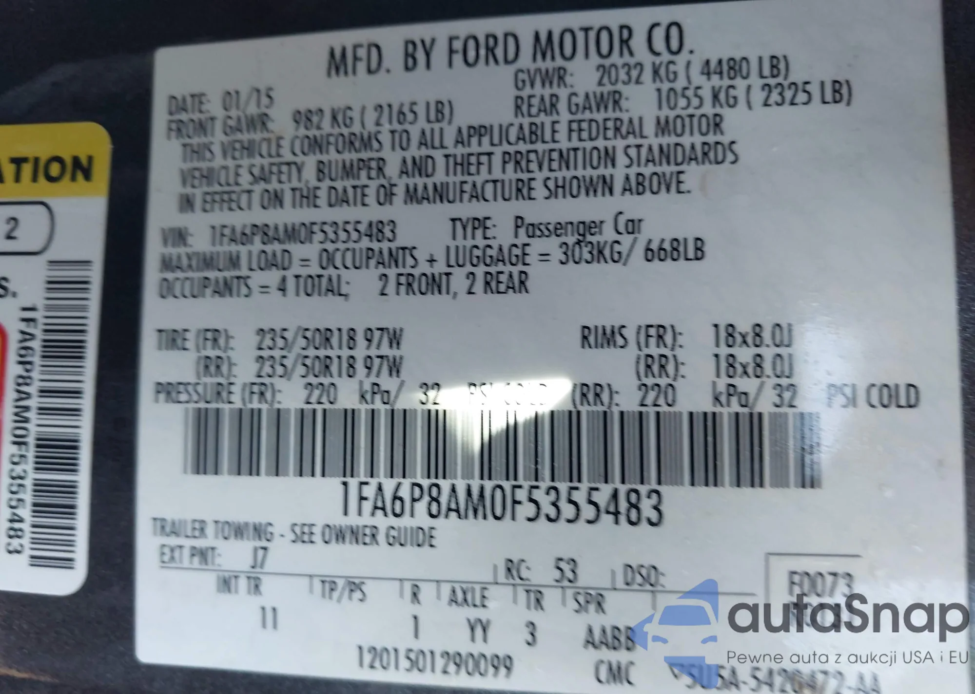 • VIN 1FA6P8AM0F5355483