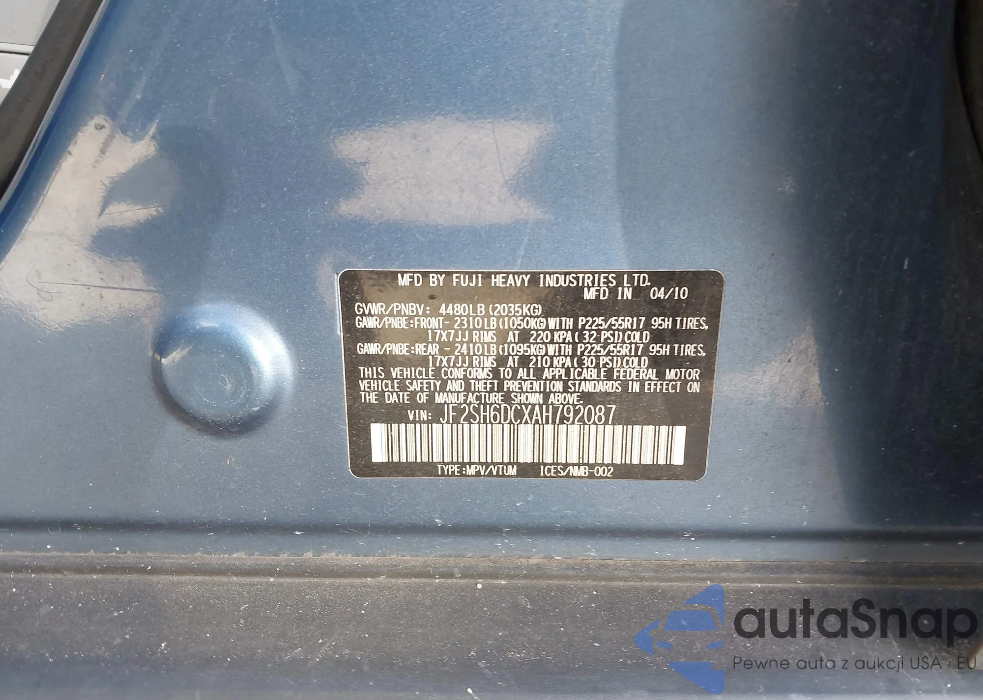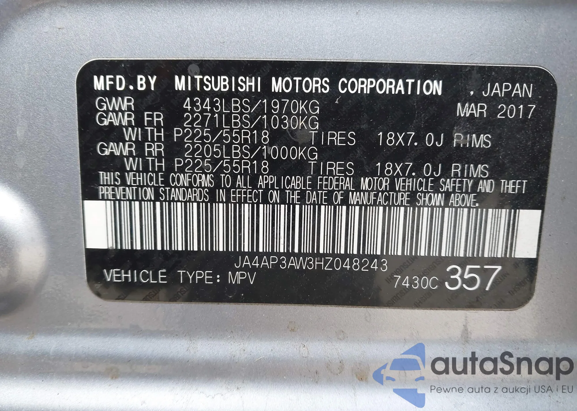 LOT: 44153476 VIN: JA4AP3AW3HZ048243