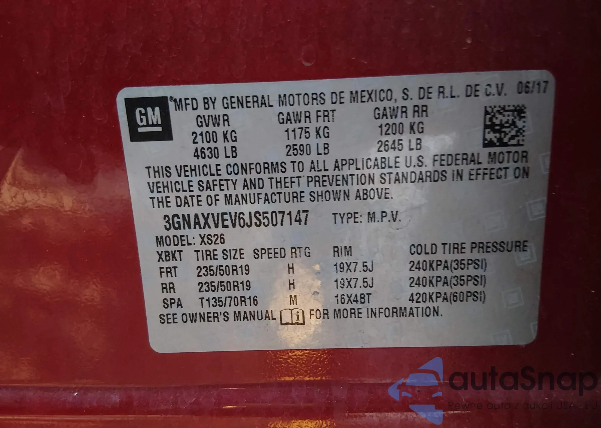 • VIN 3GNAXVEV6JS507147