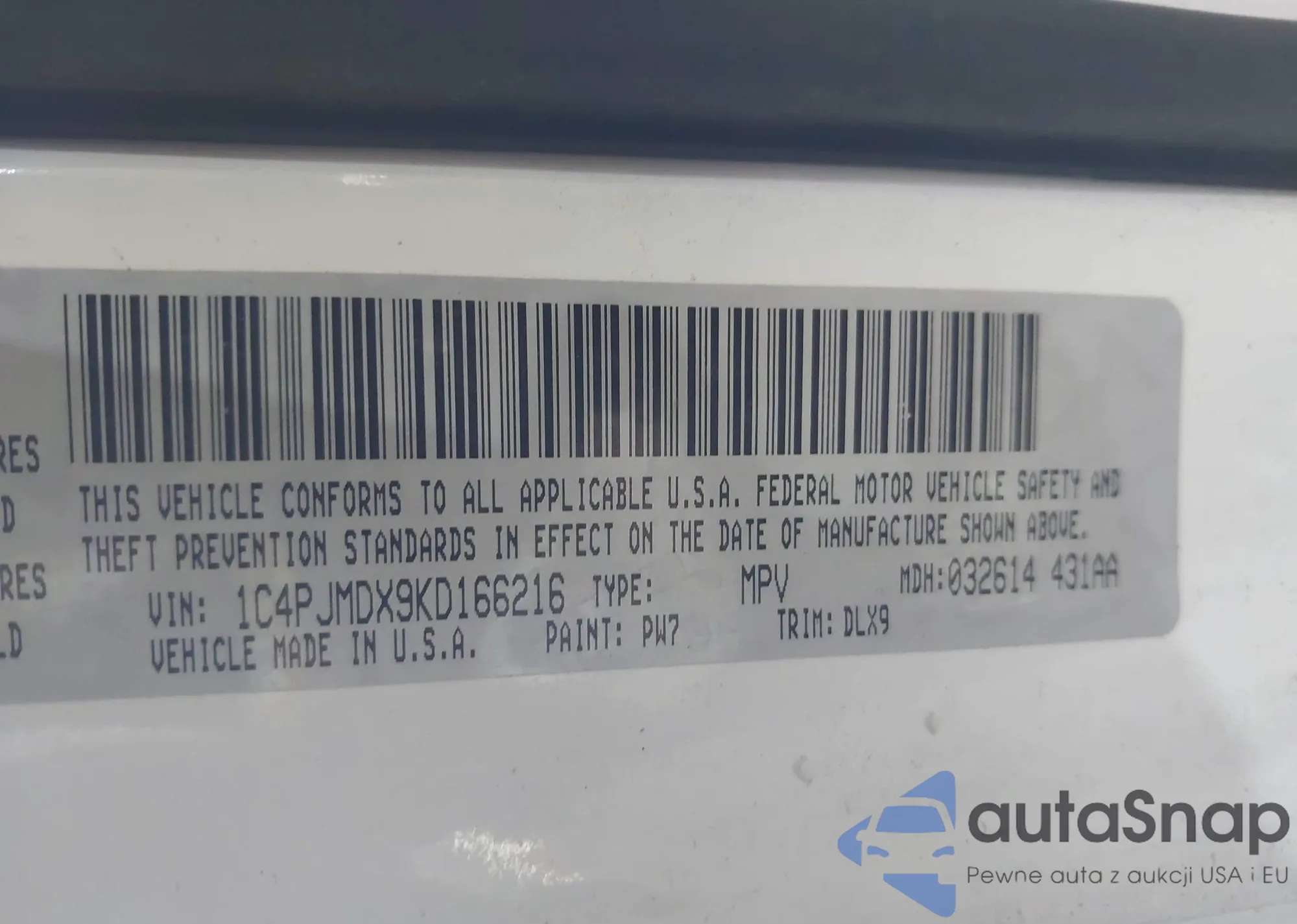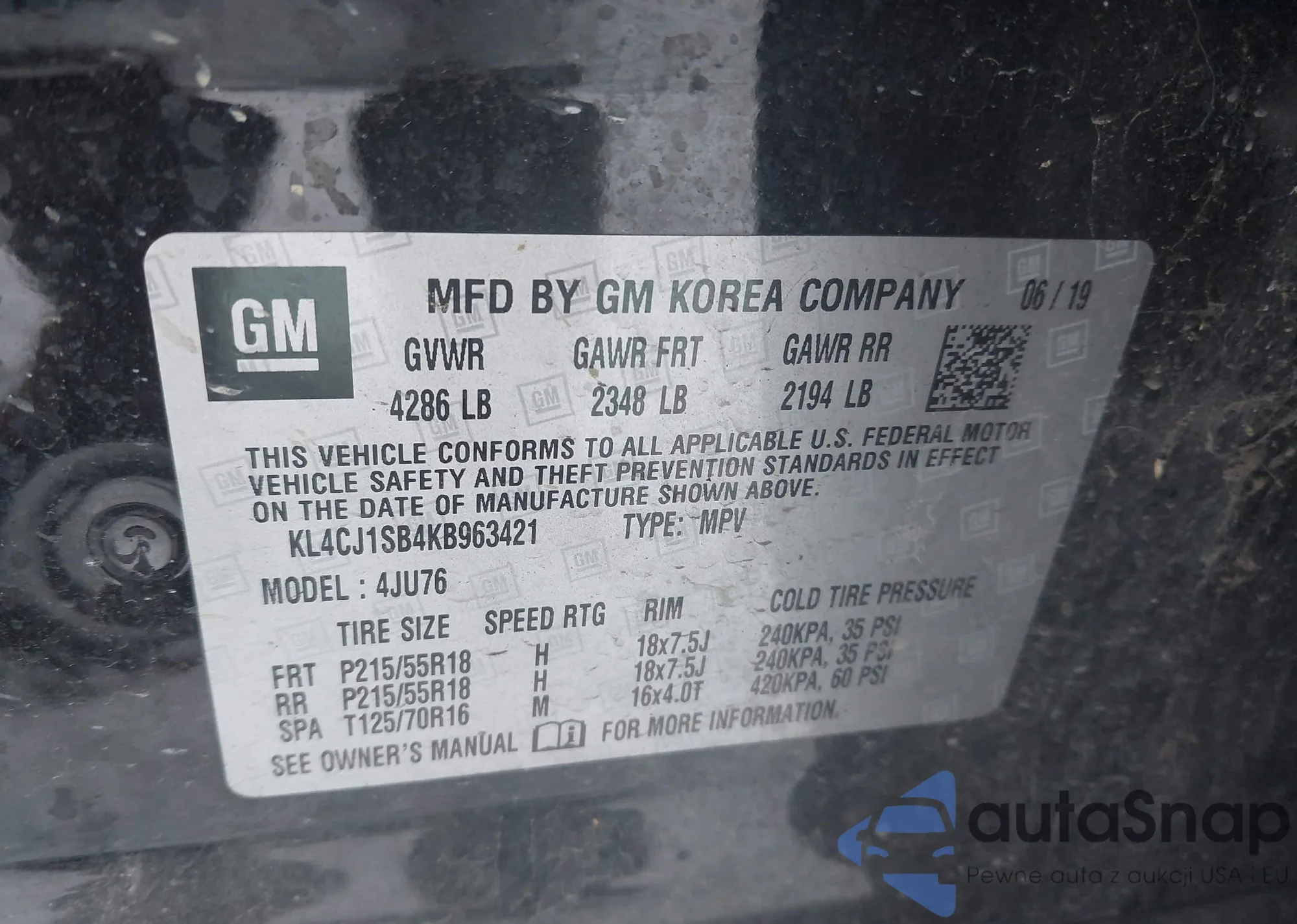 • VIN KL4CJ1SB4KB963421