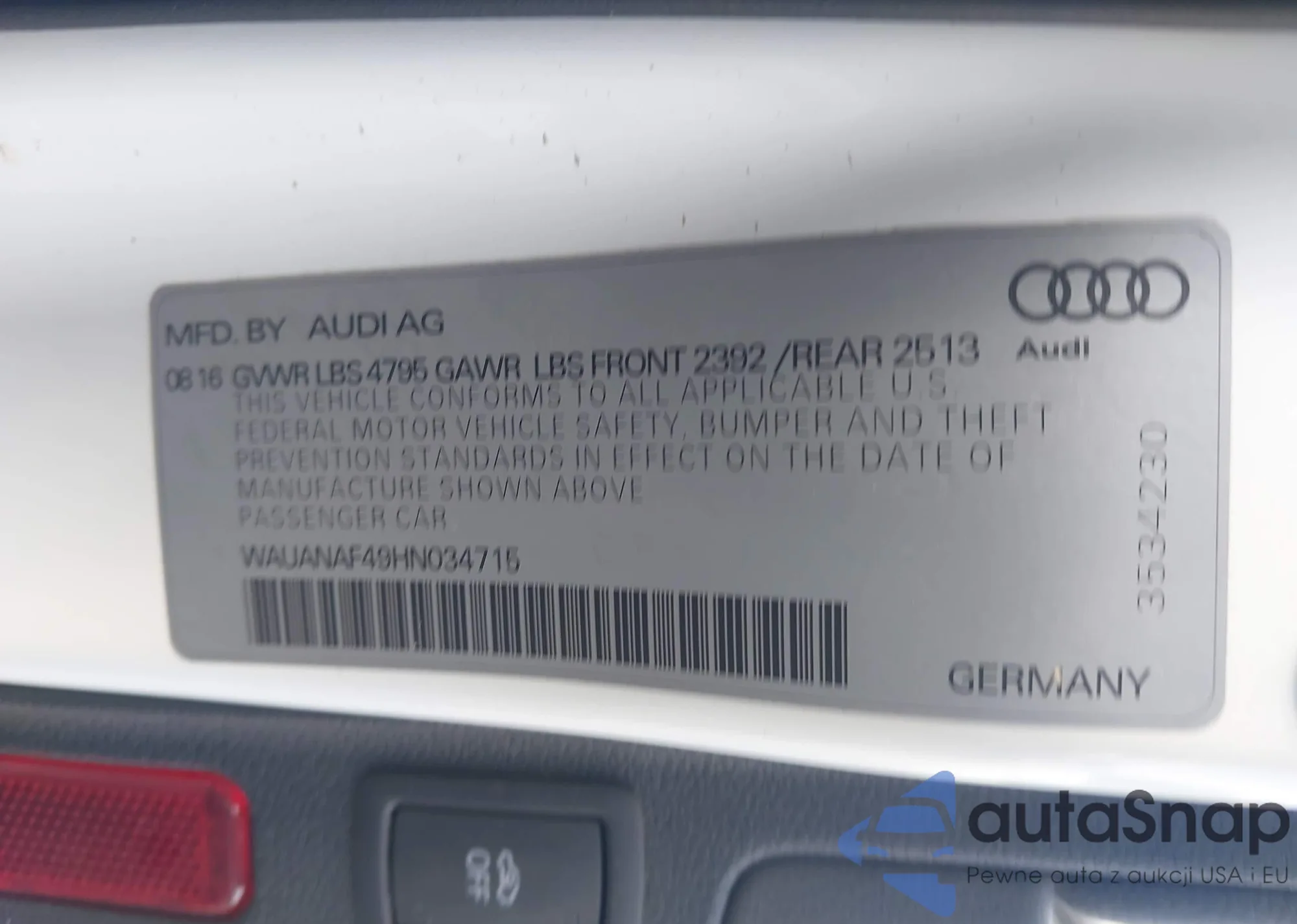 LOT: 44030075 VIN: WAUANAF49HN034715