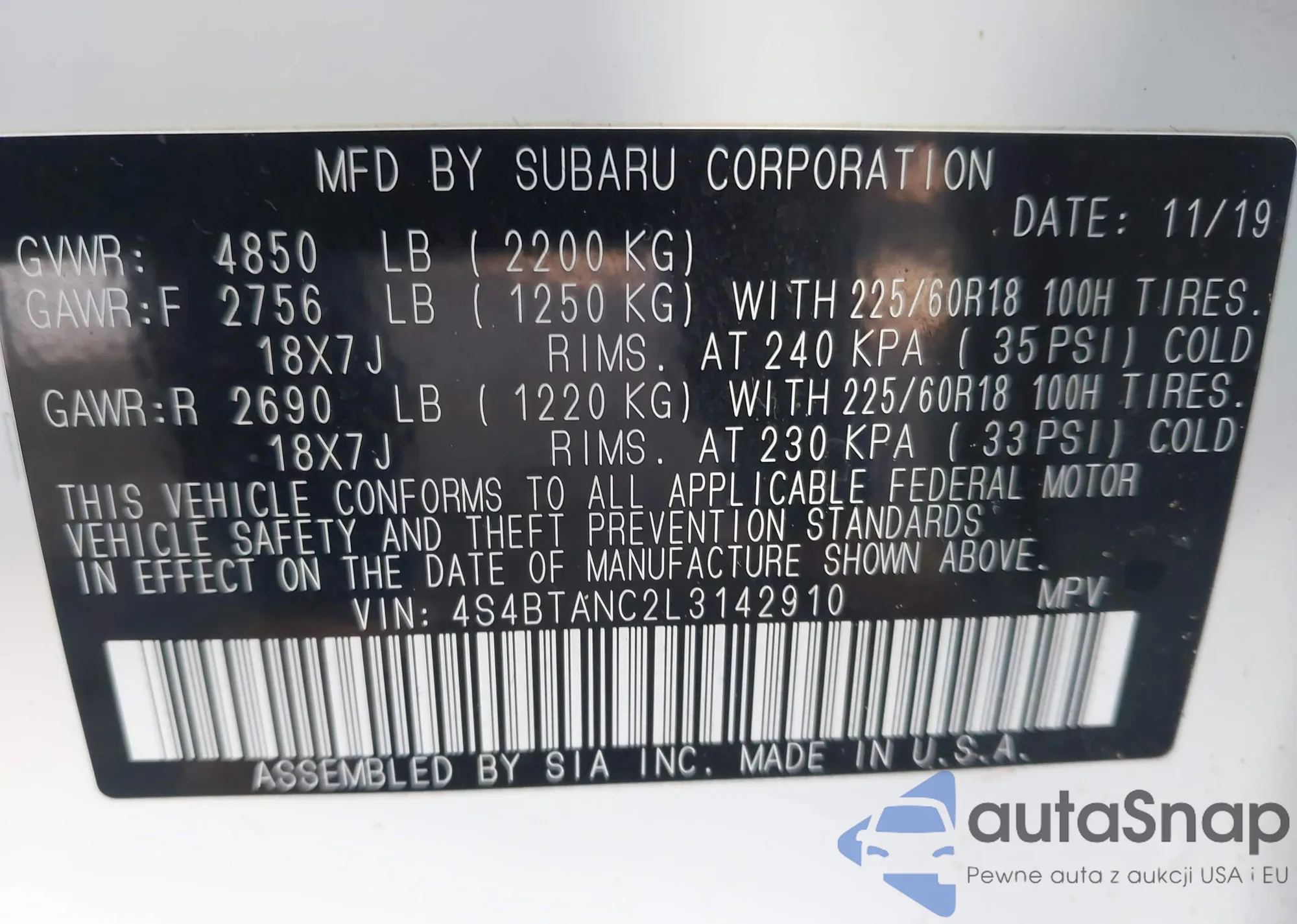 • VIN 4S4BTANC2L3142910
