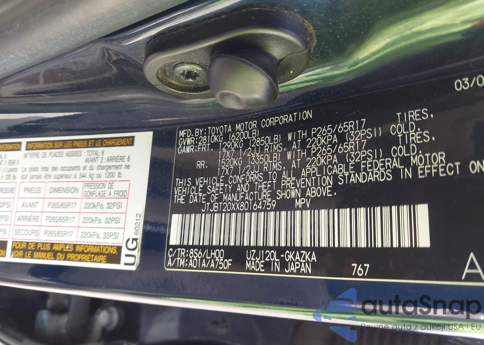LOT: 44117641 VIN: JTJBT20XX80164759